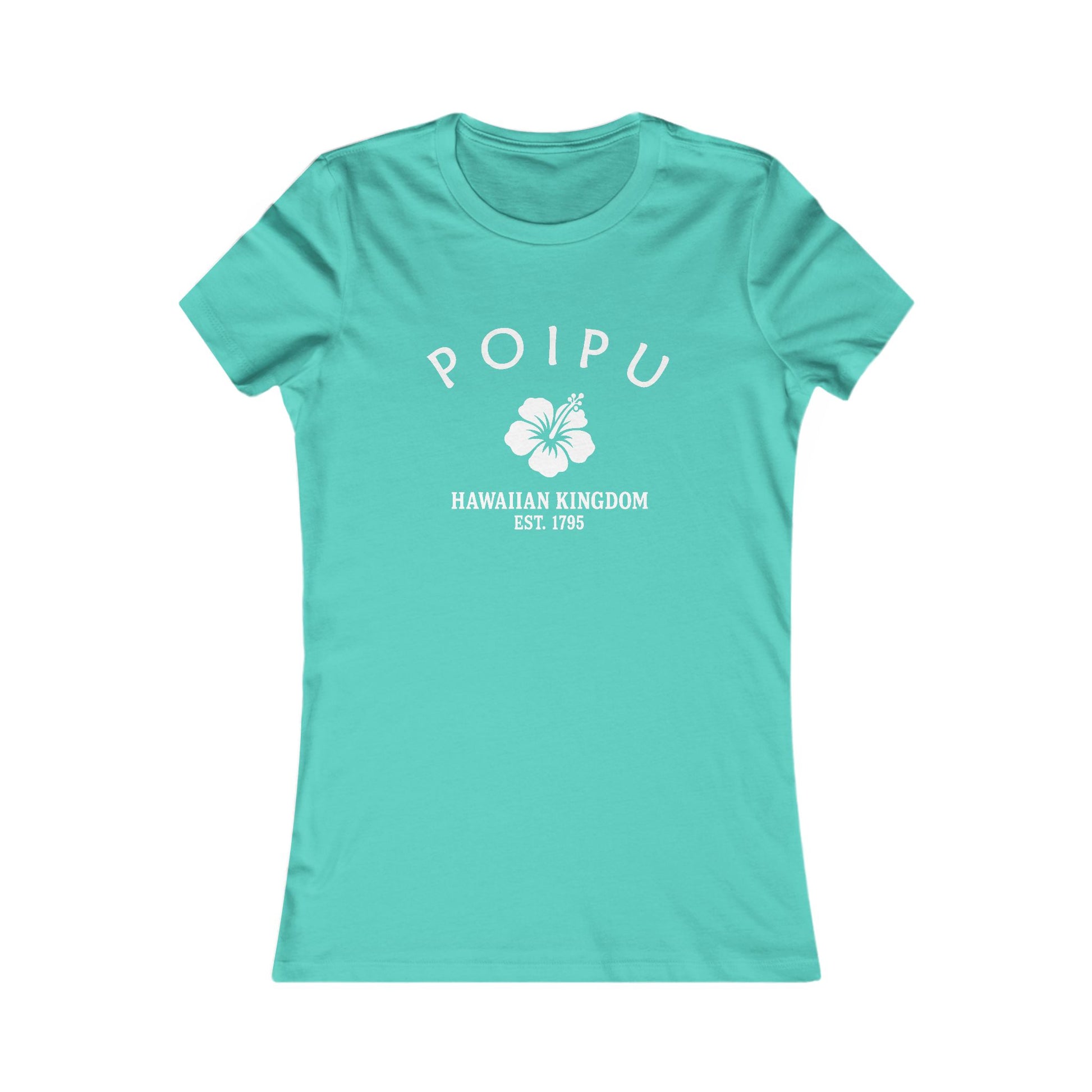 Poipu Hawaii Vintage Retro Womens Fitted Ringspun Cotton Tee - White Logo