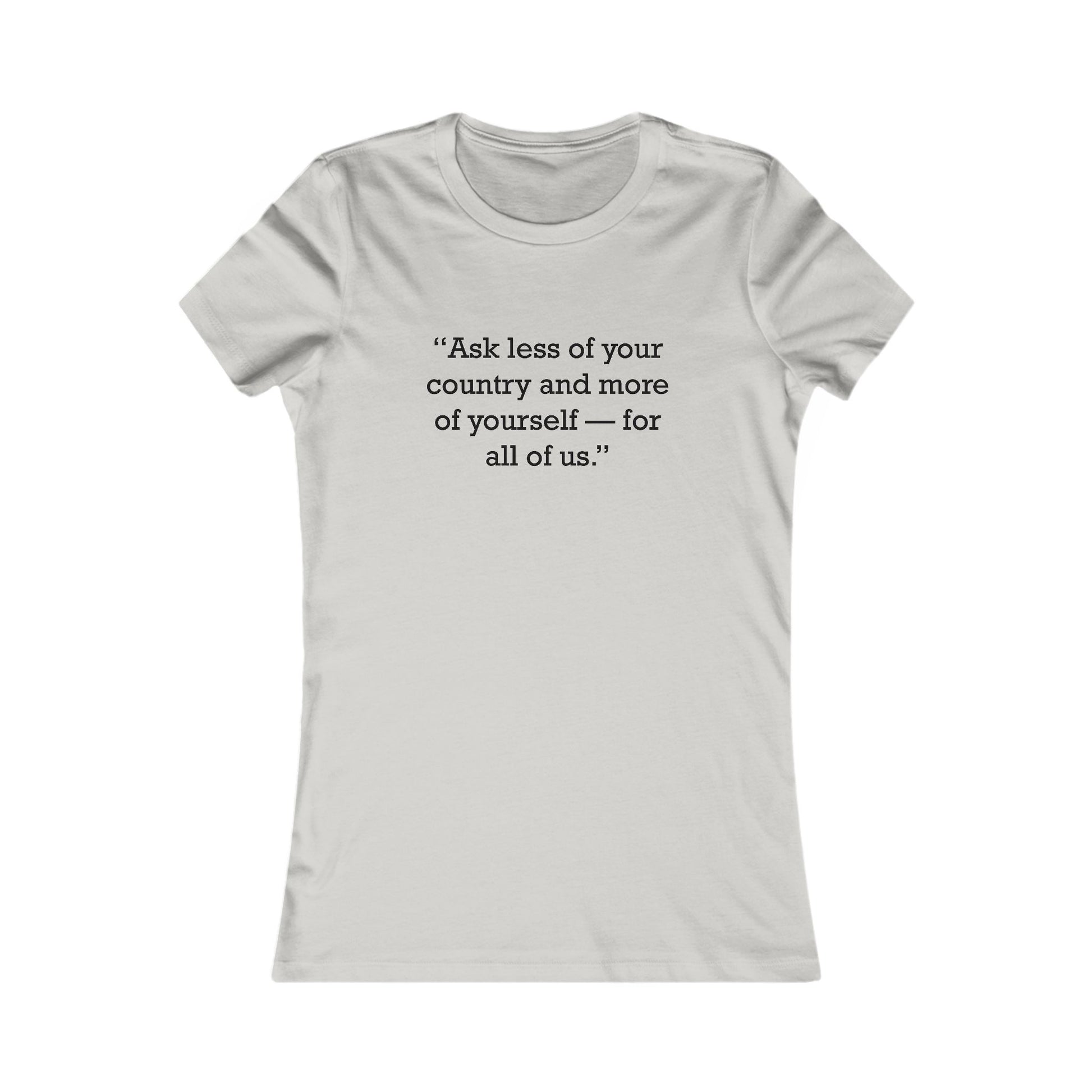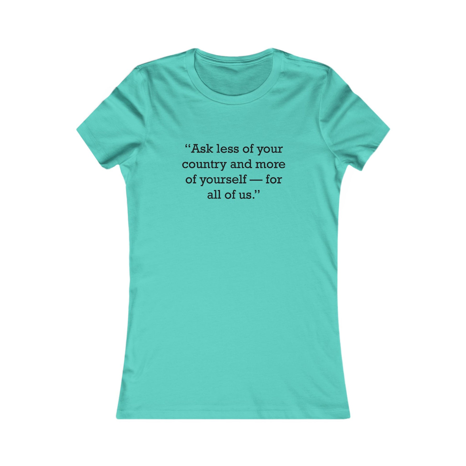 Quote 33 Ask-Less-Of Ringspun Cotton Fitted Vintage Retro Womens Tee - Black Logo