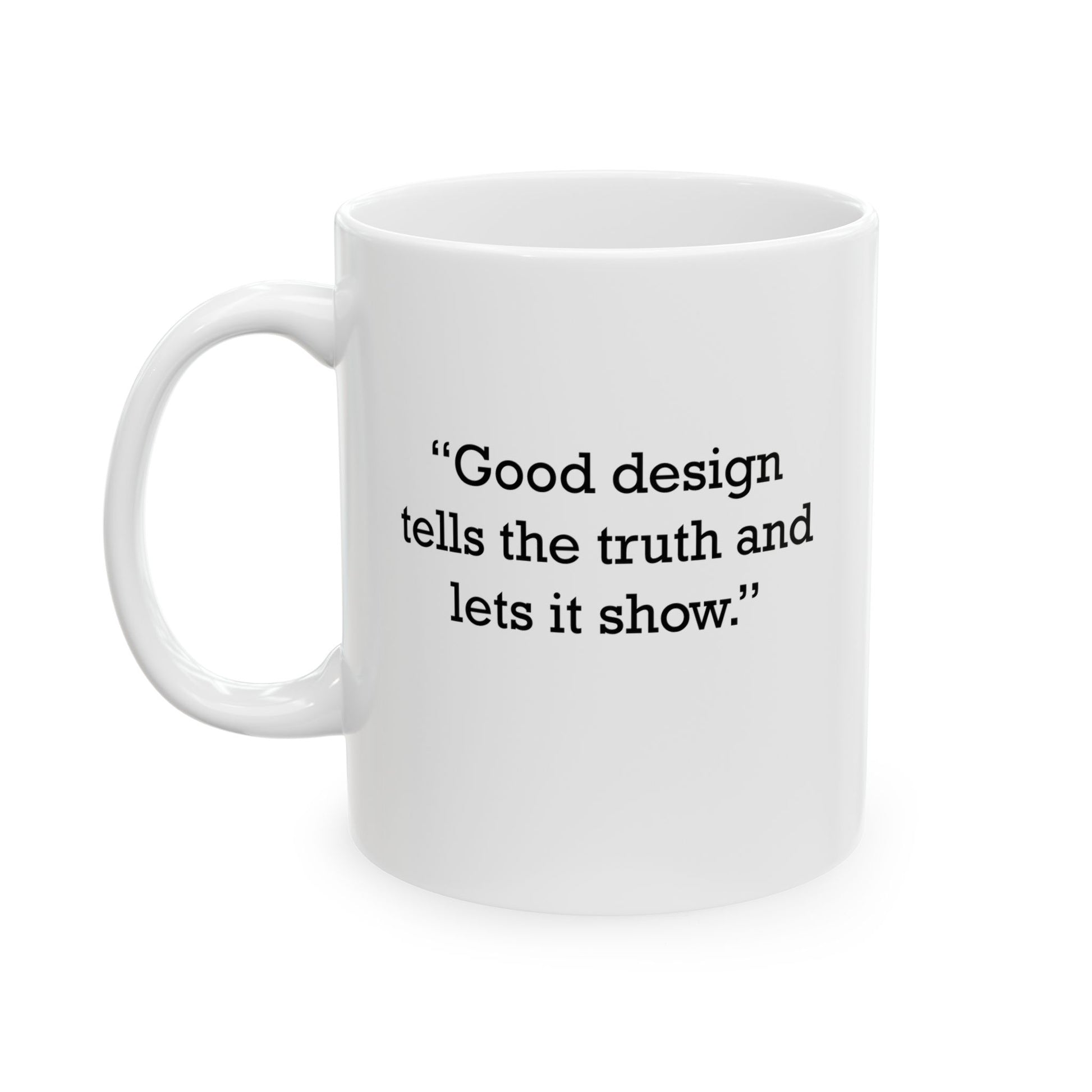 Quote 33 Good Design Tells Vintage Retro Ceramic Mug - Black Logo