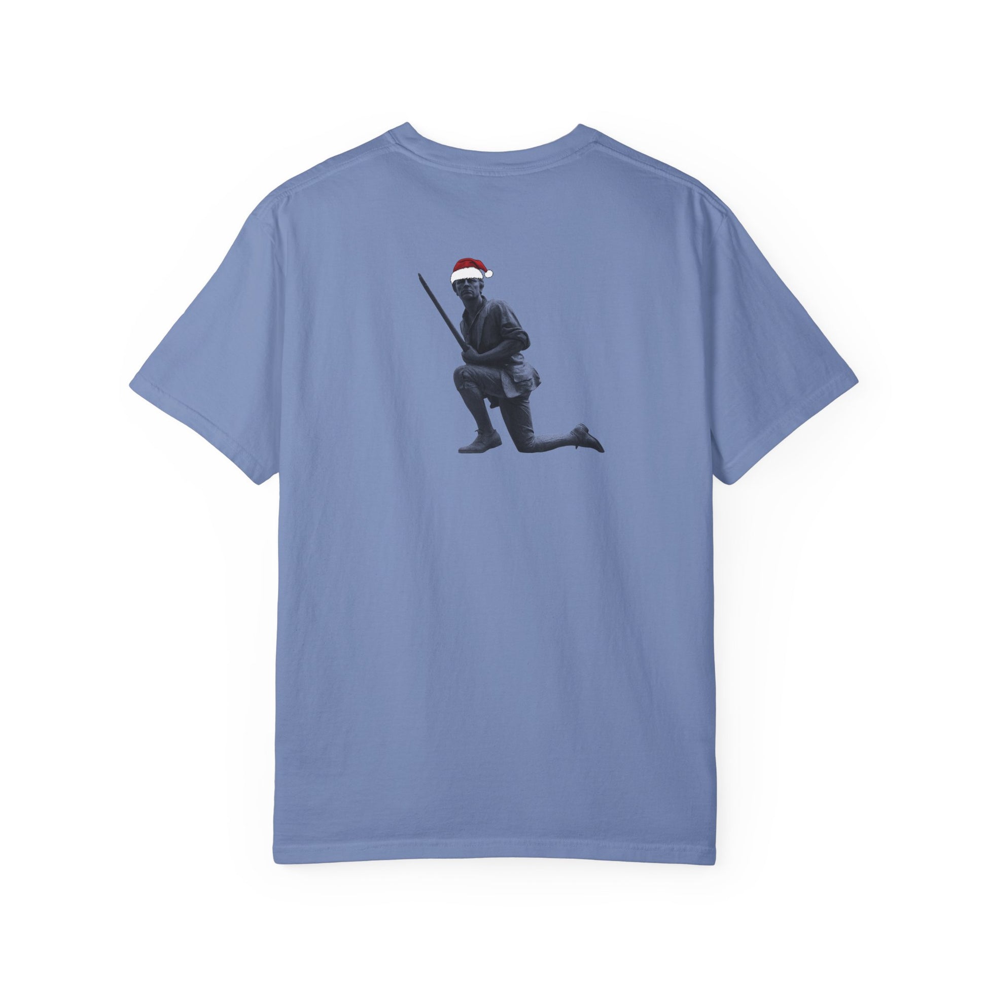 The Holiday Minuteman Series tee takes our Original Art Series cut and gives it a Revolutionary twist. Crafted from soft, heavyweight 6.1 oz garment-dyed ring-spun U.S. cotton, it has that lived-in feel with the sturdy structure you want for years of wear. The relaxed, straight silhouette and tubular knit body keep the lines clean for easy layering, while double-needle hems and a smooth, tag-free neckline stay comfortable from coffee run to holiday gathering. A refined town logo on the front and bold Minuteman artwork on the back honor Connecticut’s citizen-soldiers in a classic, understated way—equally at home with worn-in denim, cords, or a sharp winter blazer.