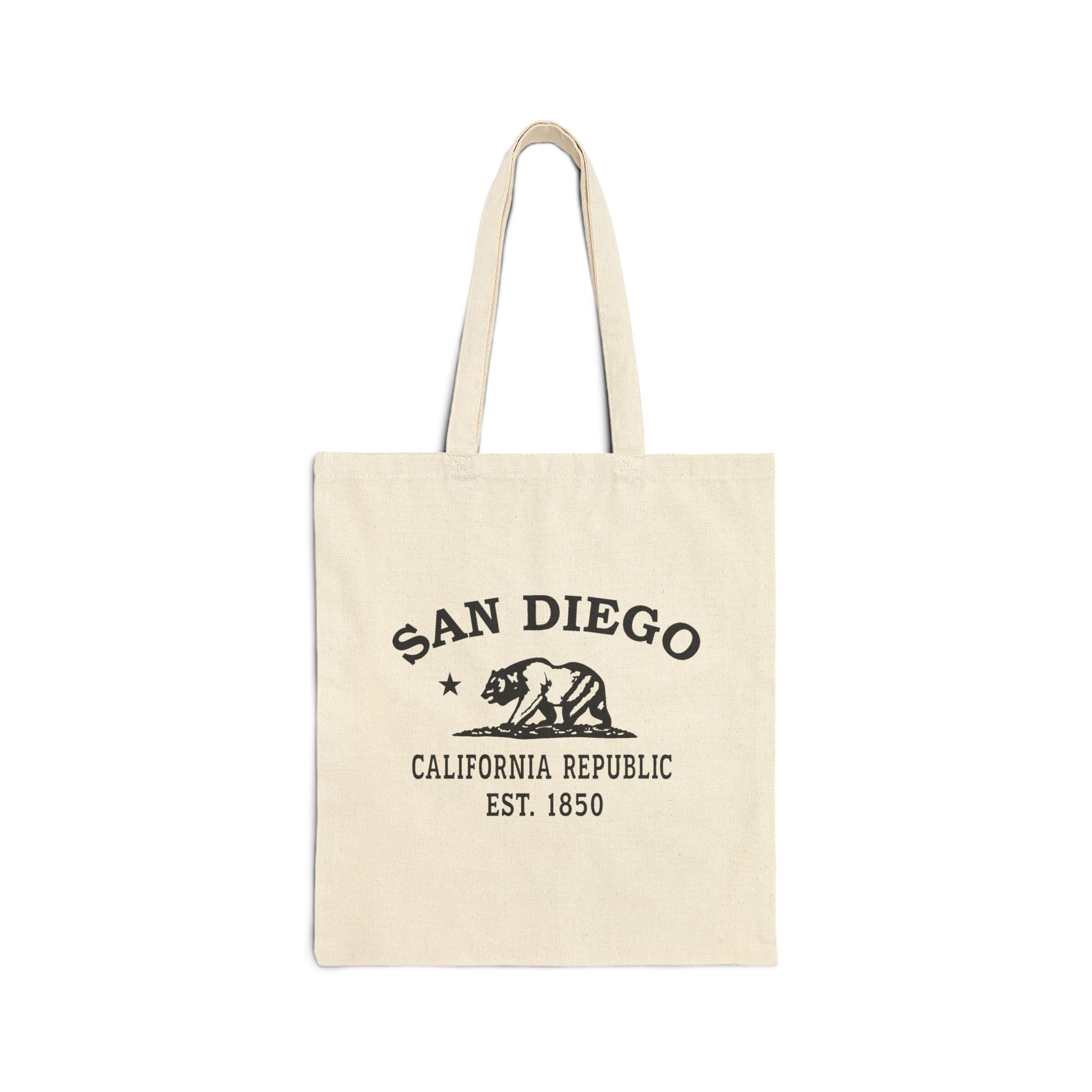 San Diego California Vintage Retro Cotton Canvas Tote Bag - Black Logo