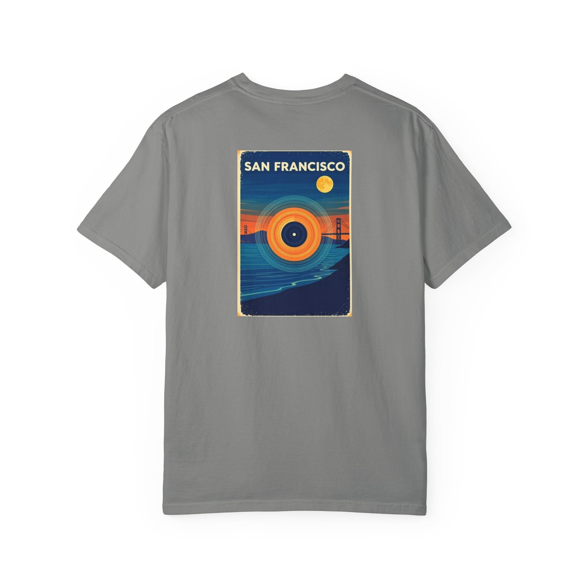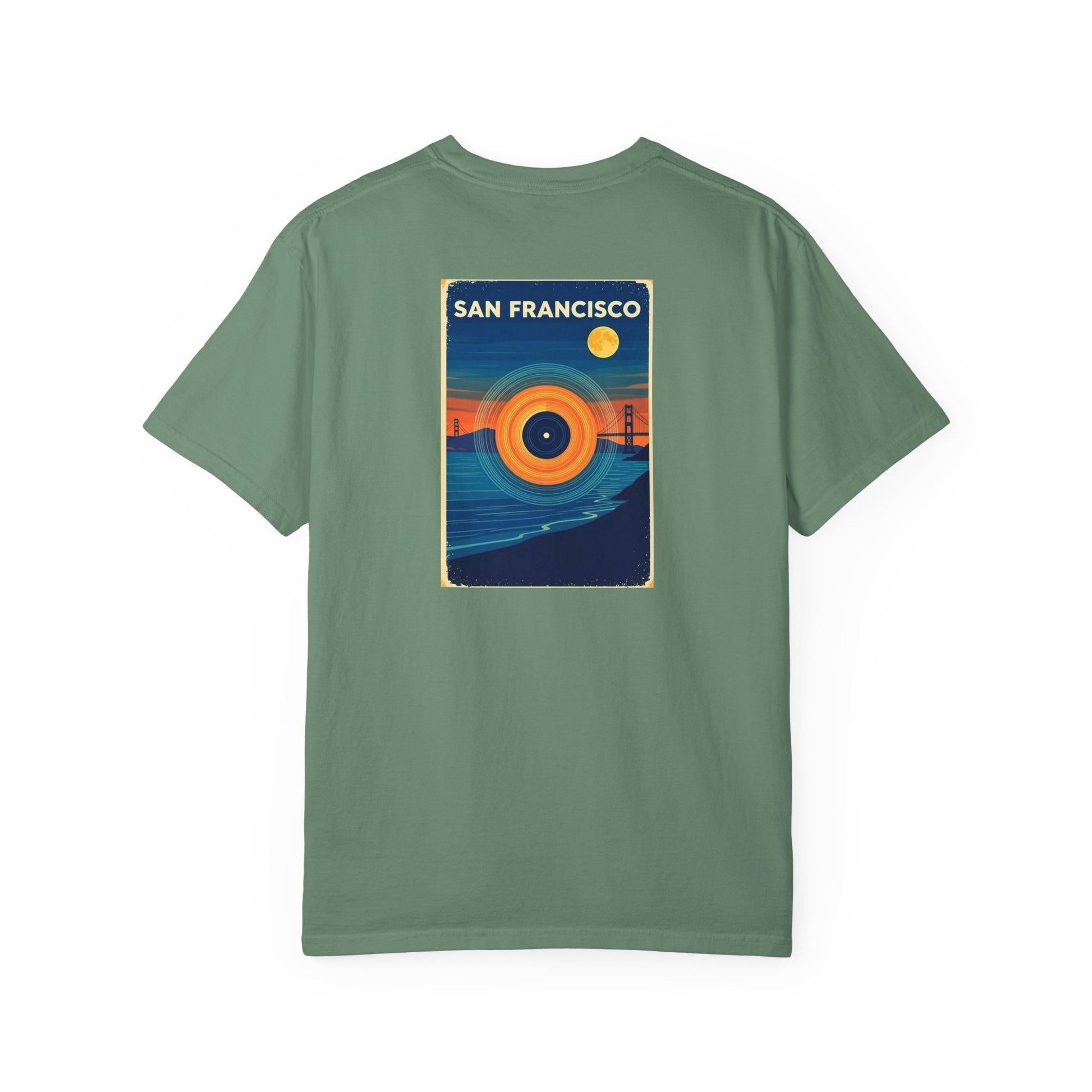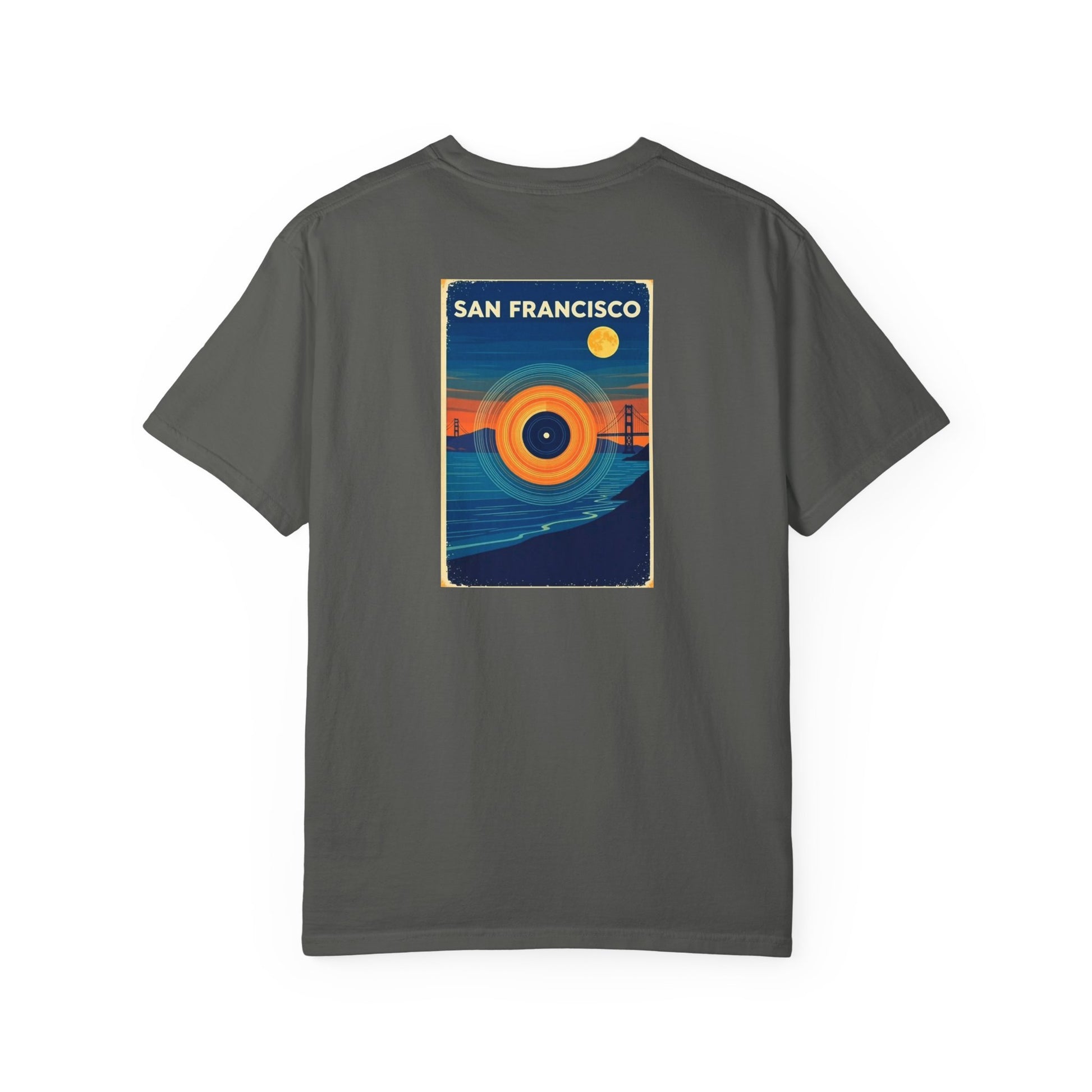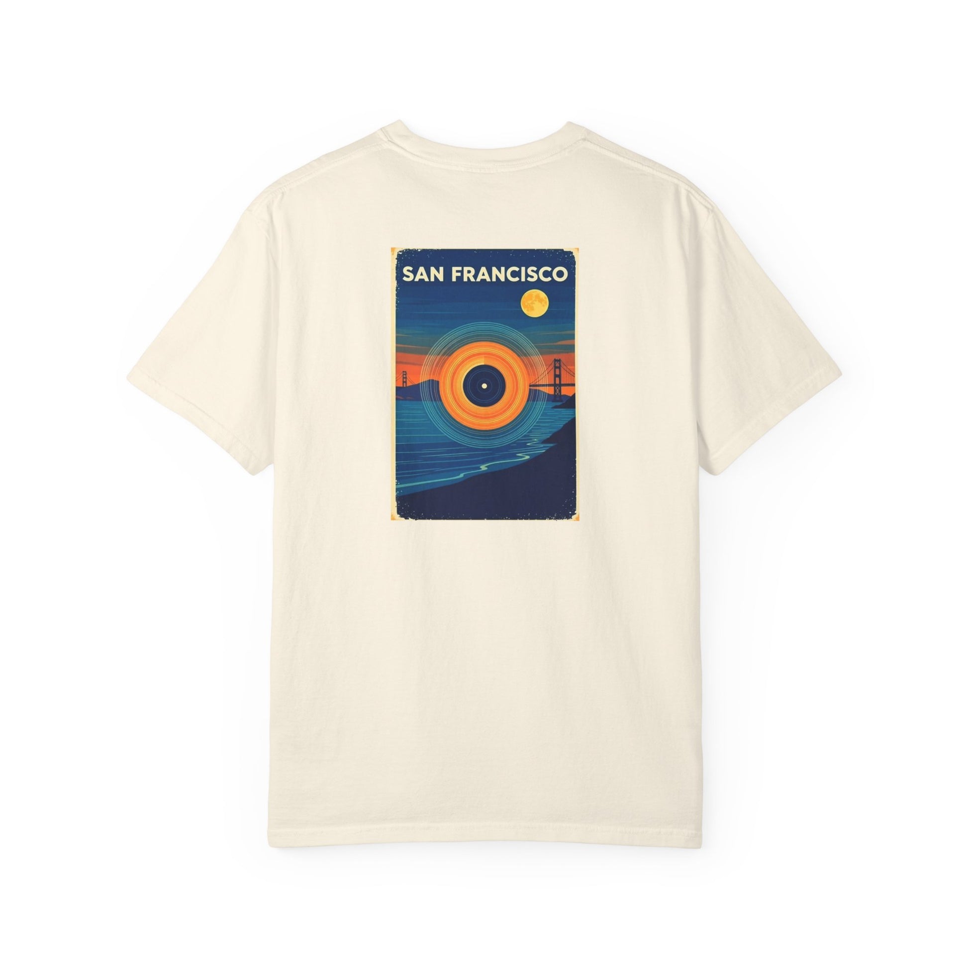 San Francisco California Vintage Retro Back Printed Art Series Cotton Tee - Black Logo