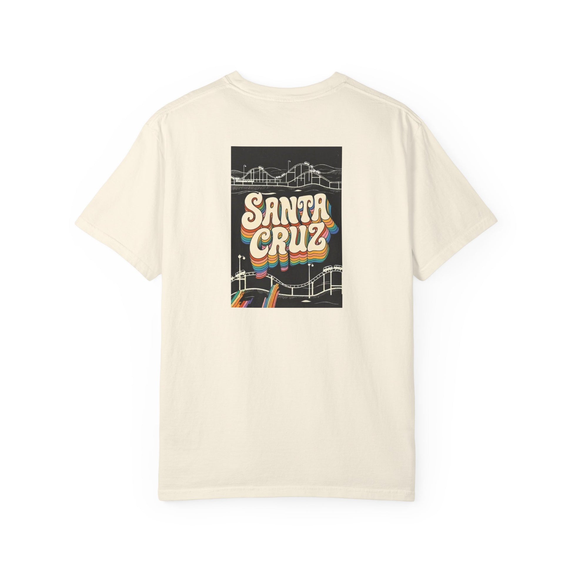 Santa Cruz California Vintage Retro Back Printed Art Series Cotton Tee - Black Logo