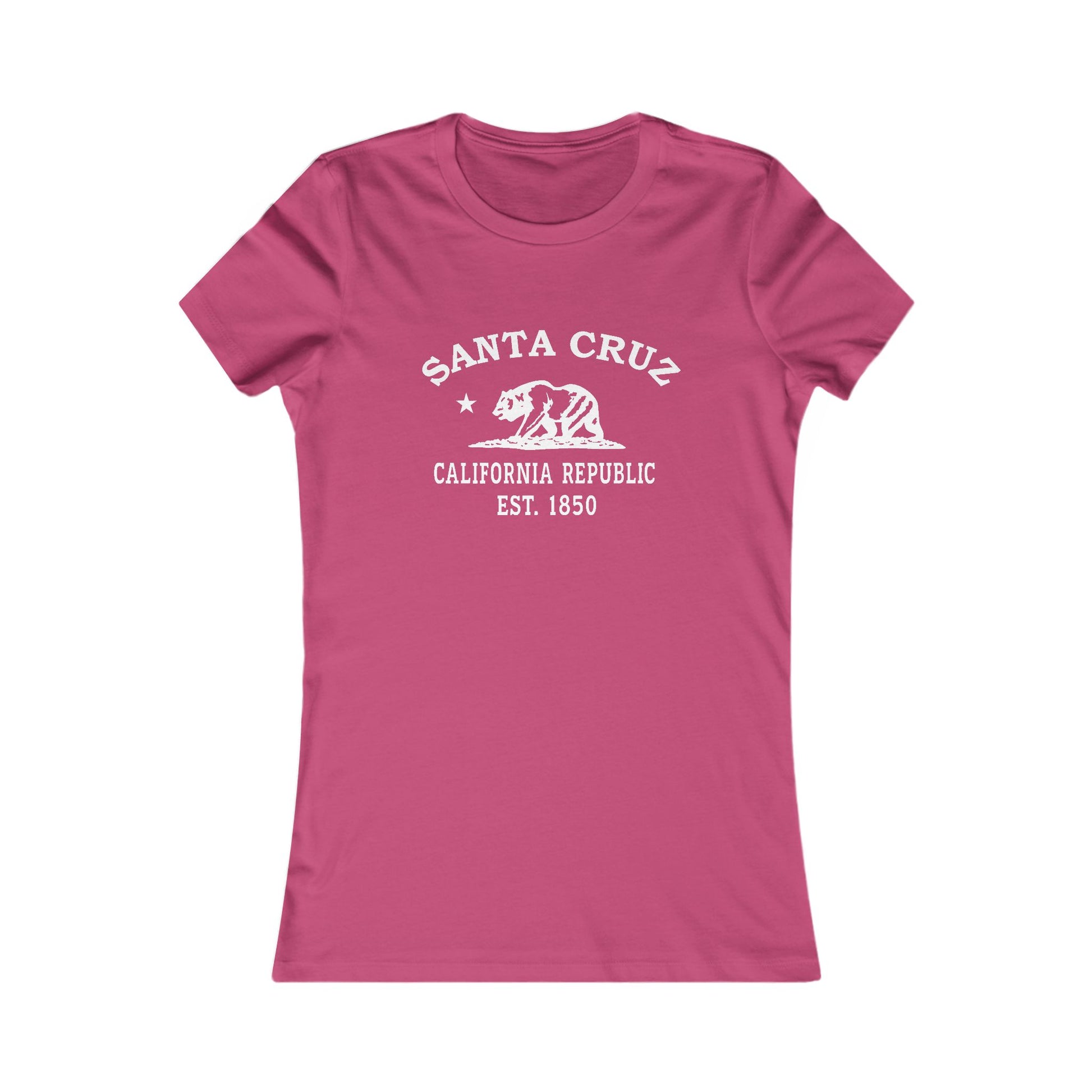 Santa Cruz California Vintage Retro Womens Fitted Ringspun Cotton Tee - White Logo