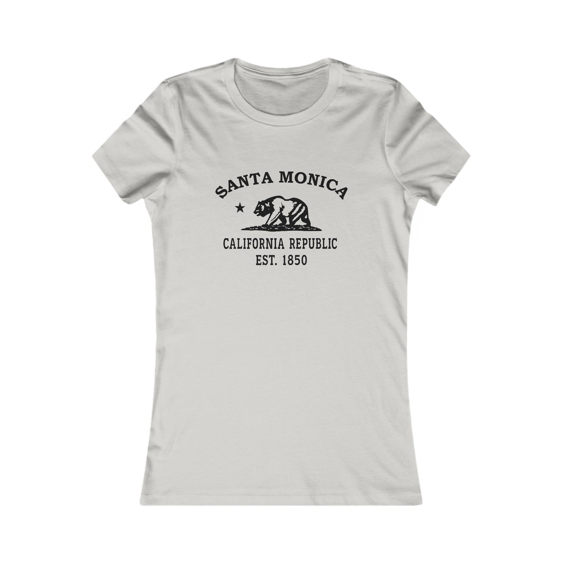 Santa Monica California Vintage Retro Womens Fitted Ringspun Cotton Tee - Black Logo