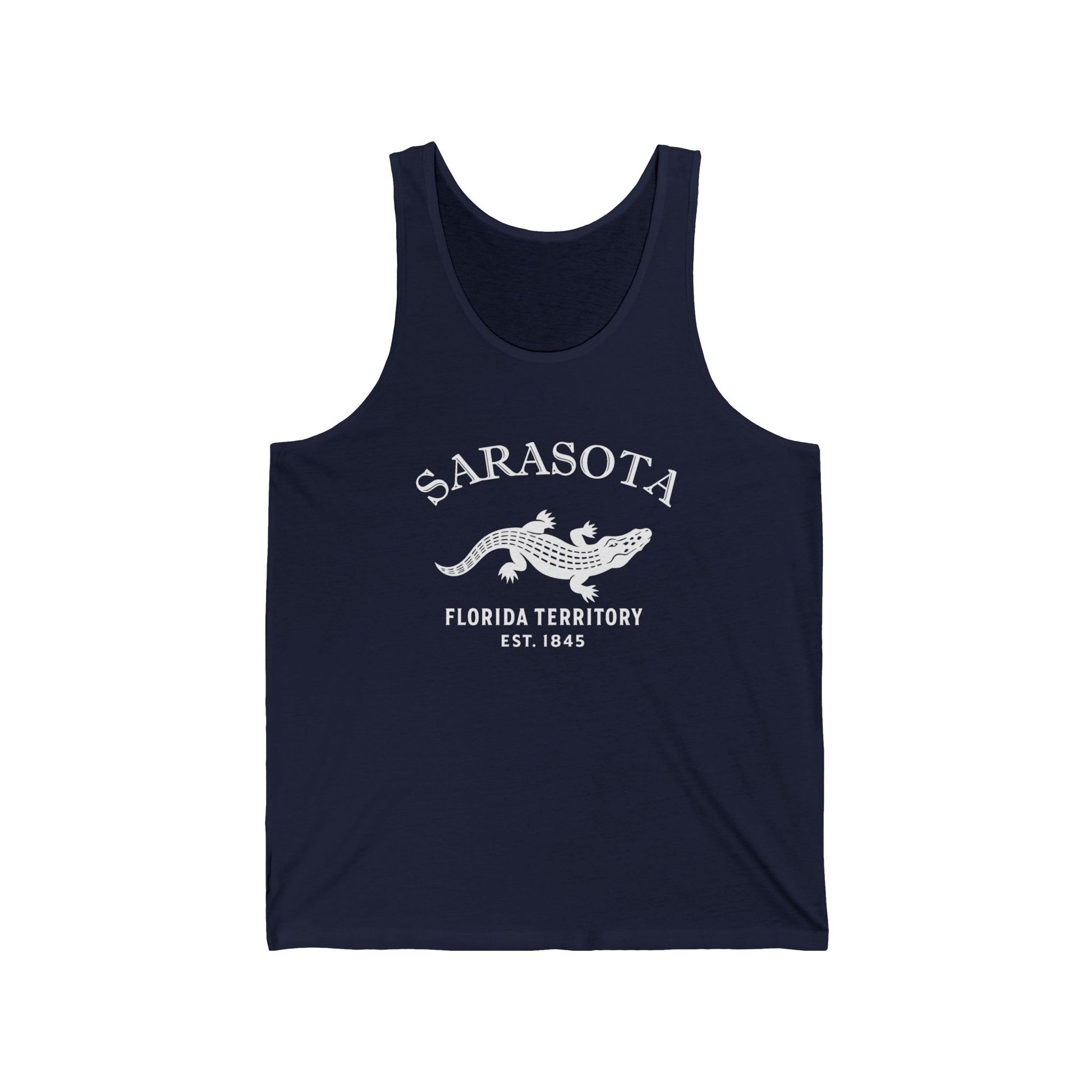 Sarasota Florida Vintage Retro Unisex Cotton Jersey Tank Top - White Logo