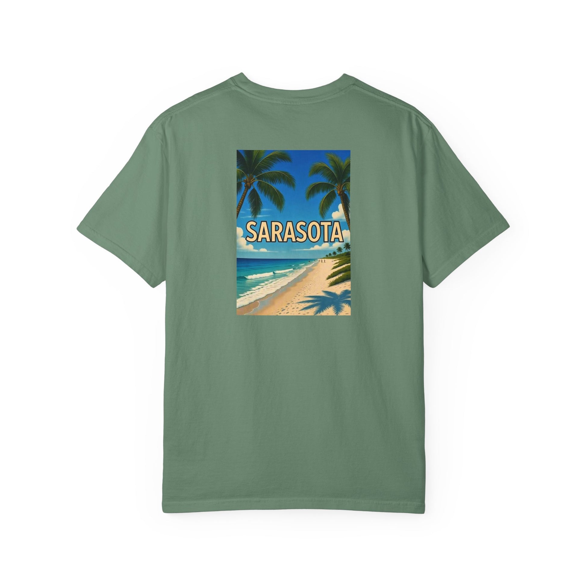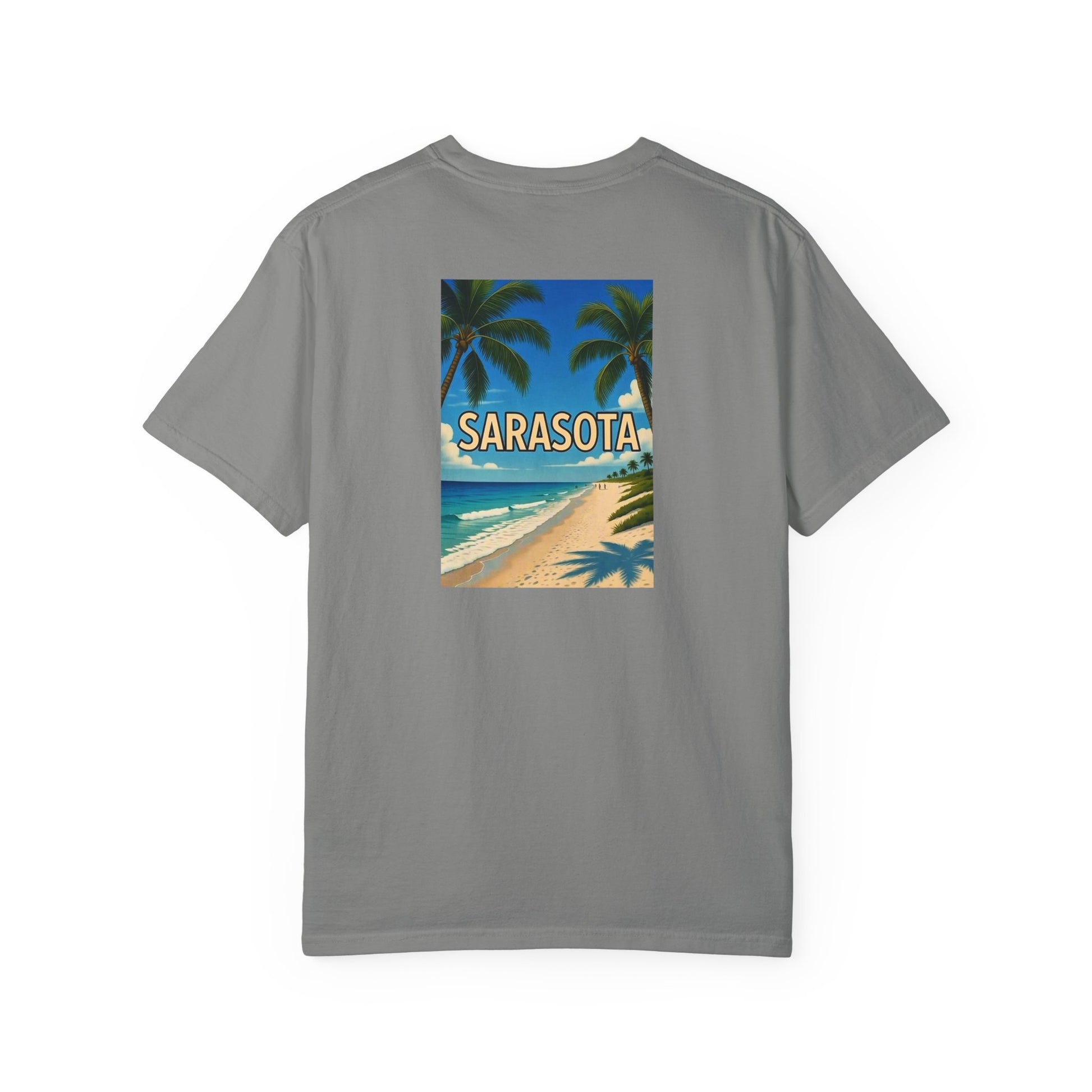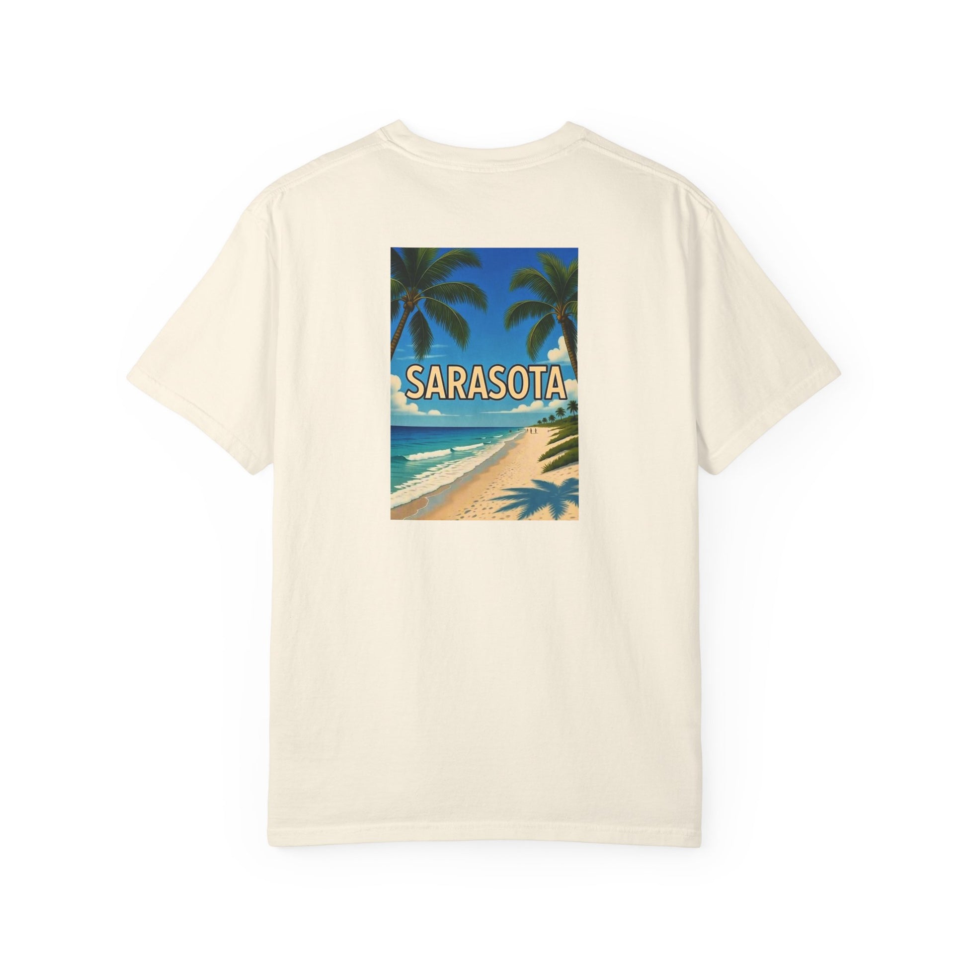 Sarasota Florida Vintage Retro Back Printed Art Series Cotton Tee - Black Logo