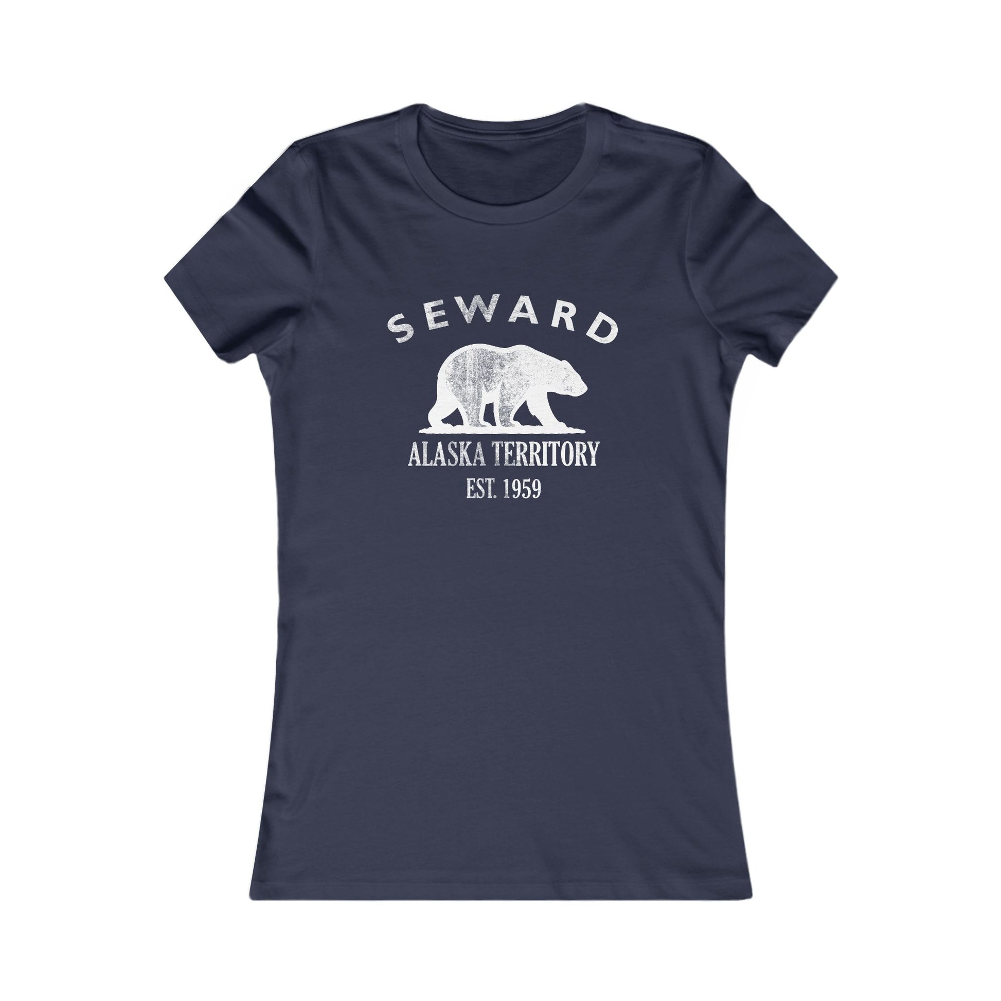 Seward Alaska Vintage Retro Womens Fitted Ringspun Cotton Tee - White Logo