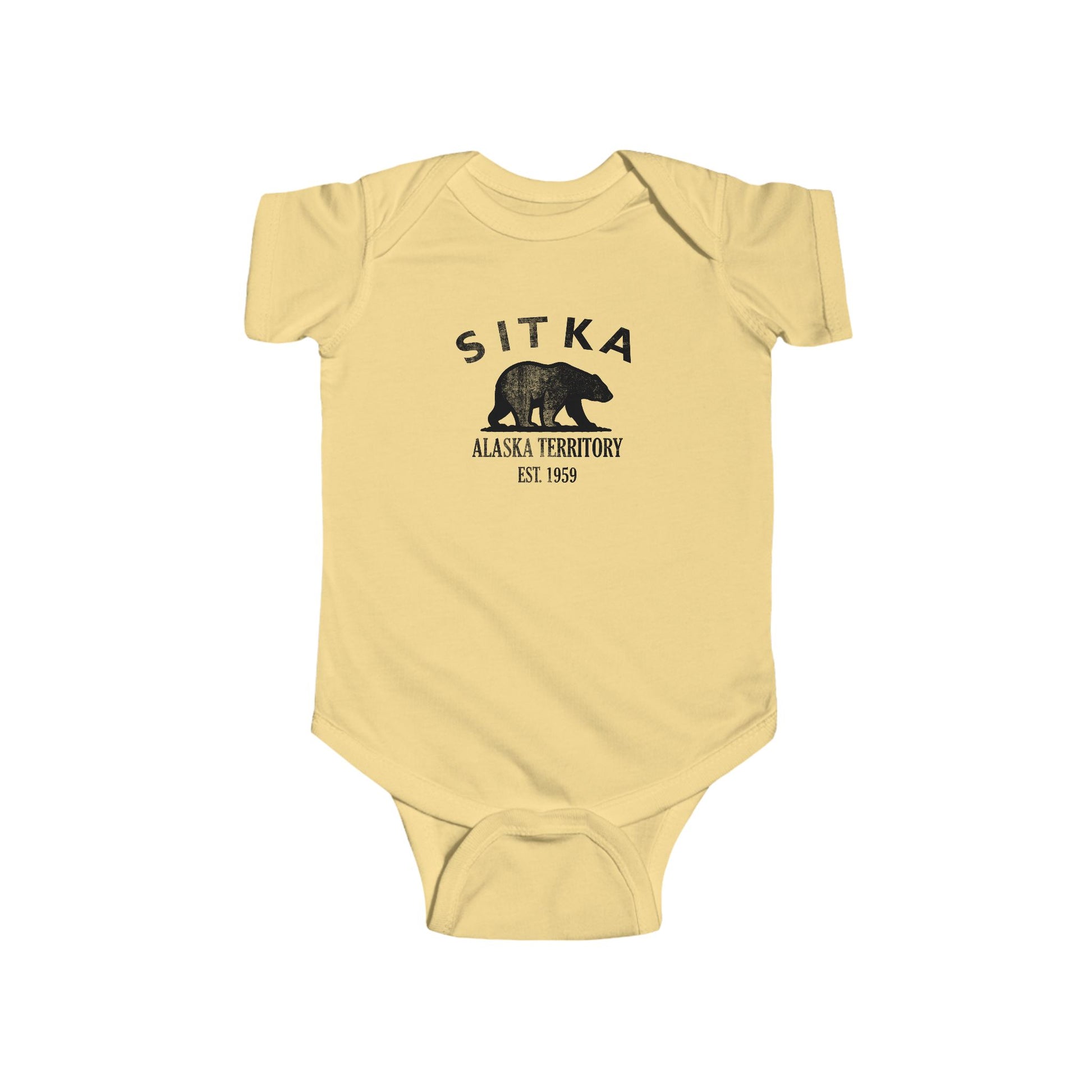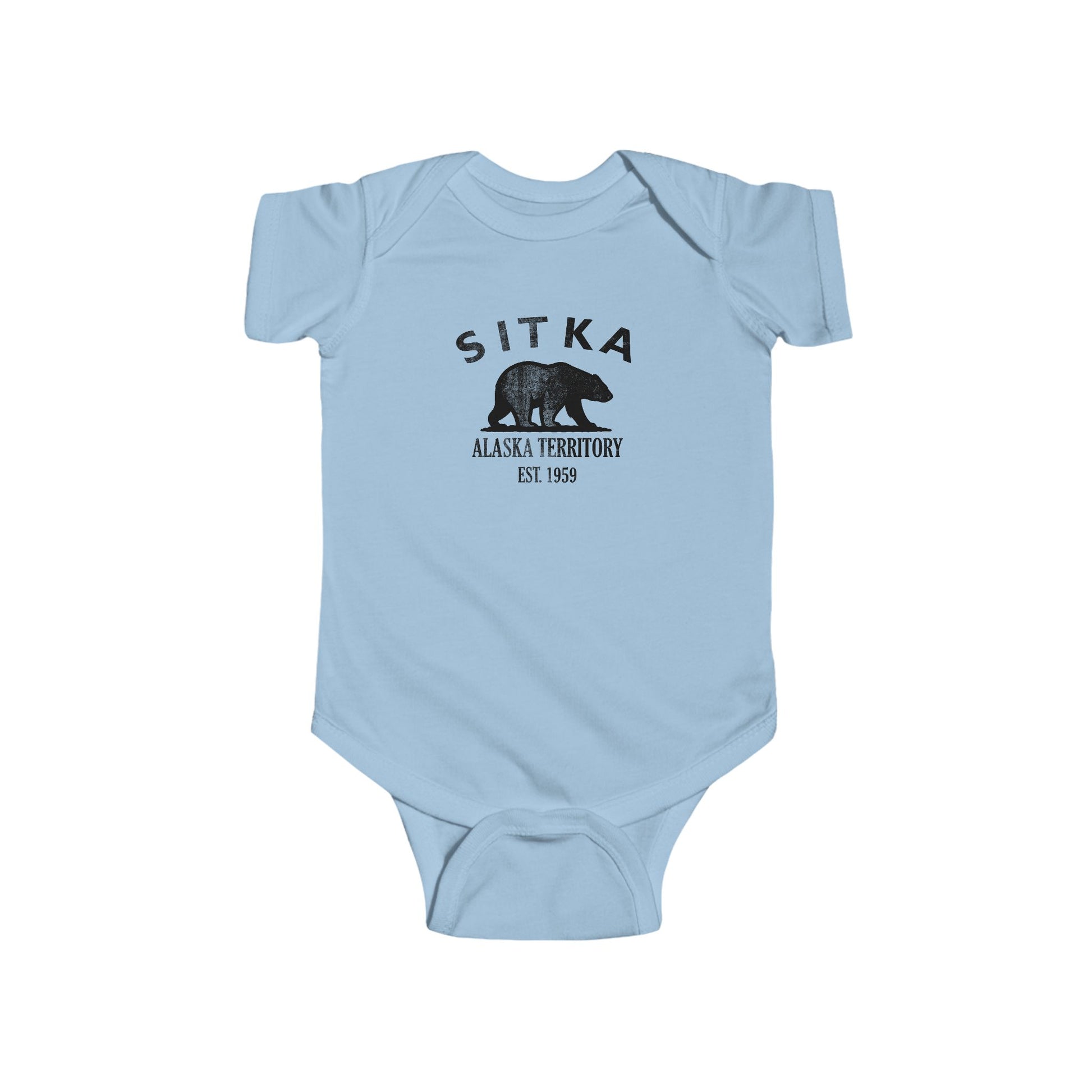 Sitka Alaska Vintage Retro Cotton Jersey Baby Bodysuit - Black Logo