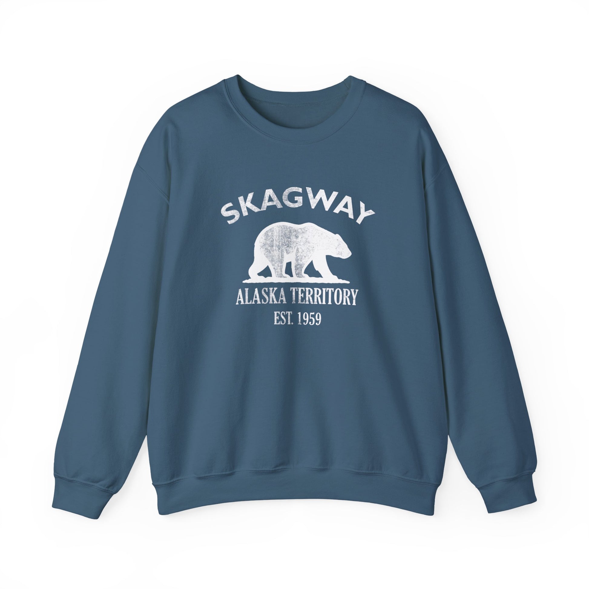 Skagway Alaska Vintage Retro Unisex Heavy Crewneck Sweatshirt - White Logo