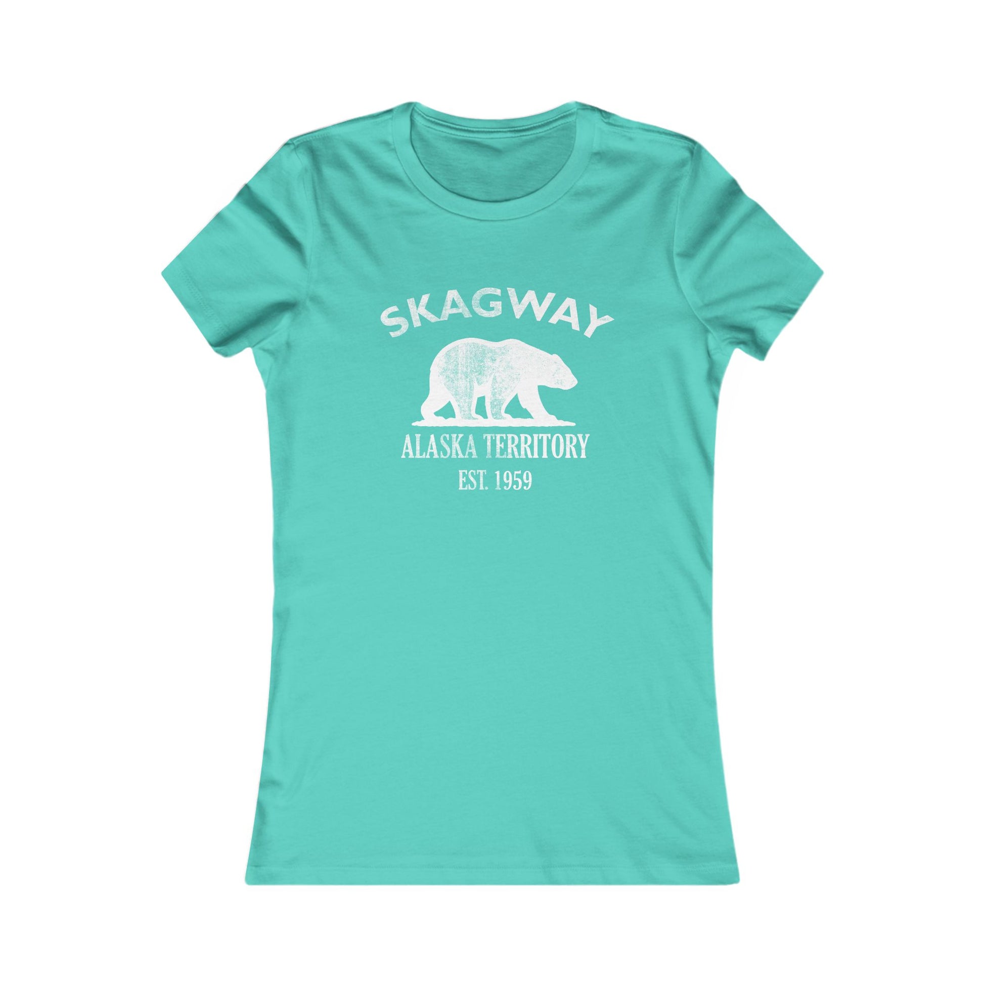Skagway Alaska Vintage Retro Womens Fitted Ringspun Cotton Tee - White Logo