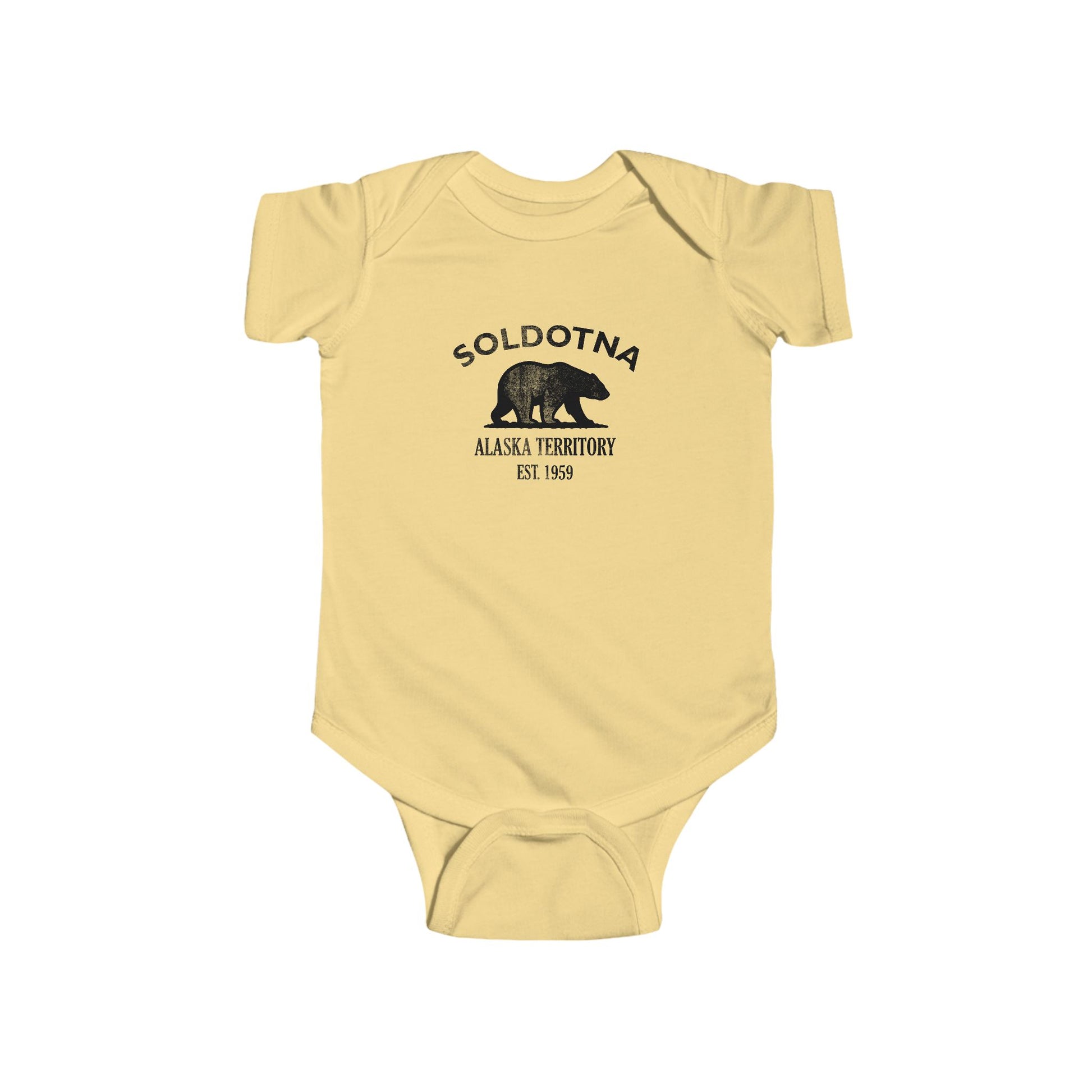 Soldotna Alaska Vintage Retro Cotton Jersey Baby Bodysuit - Black Logo