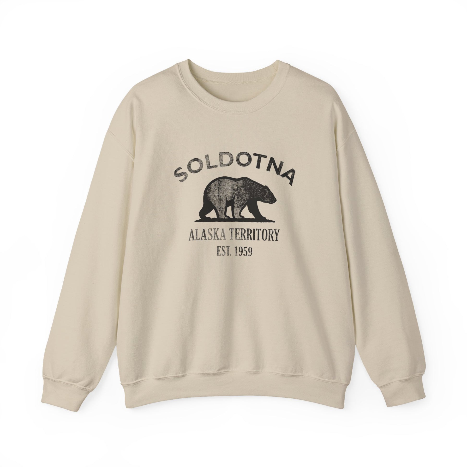 Soldotna Alaska Vintage Retro Unisex Heavy Crewneck Sweatshirt - Black Logo