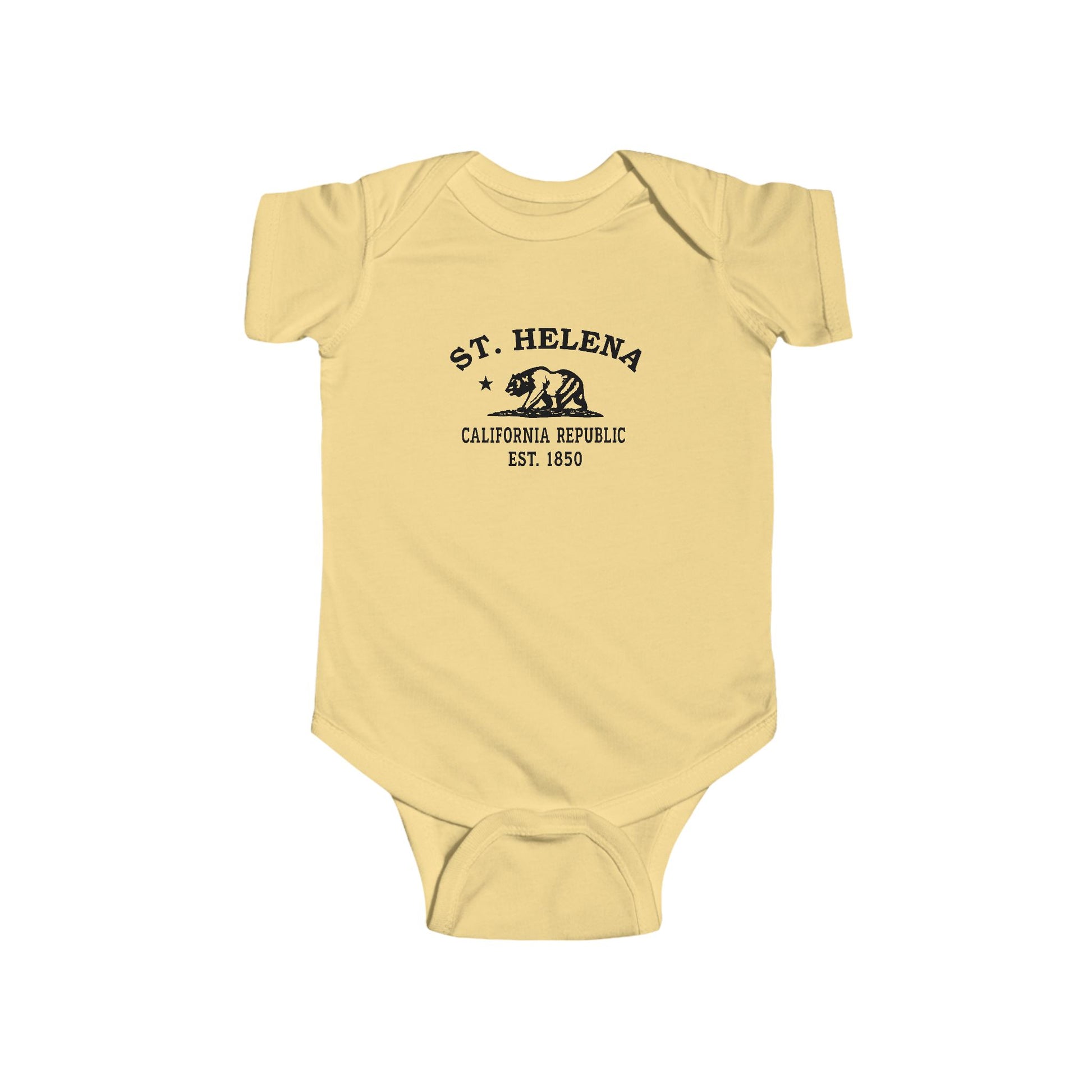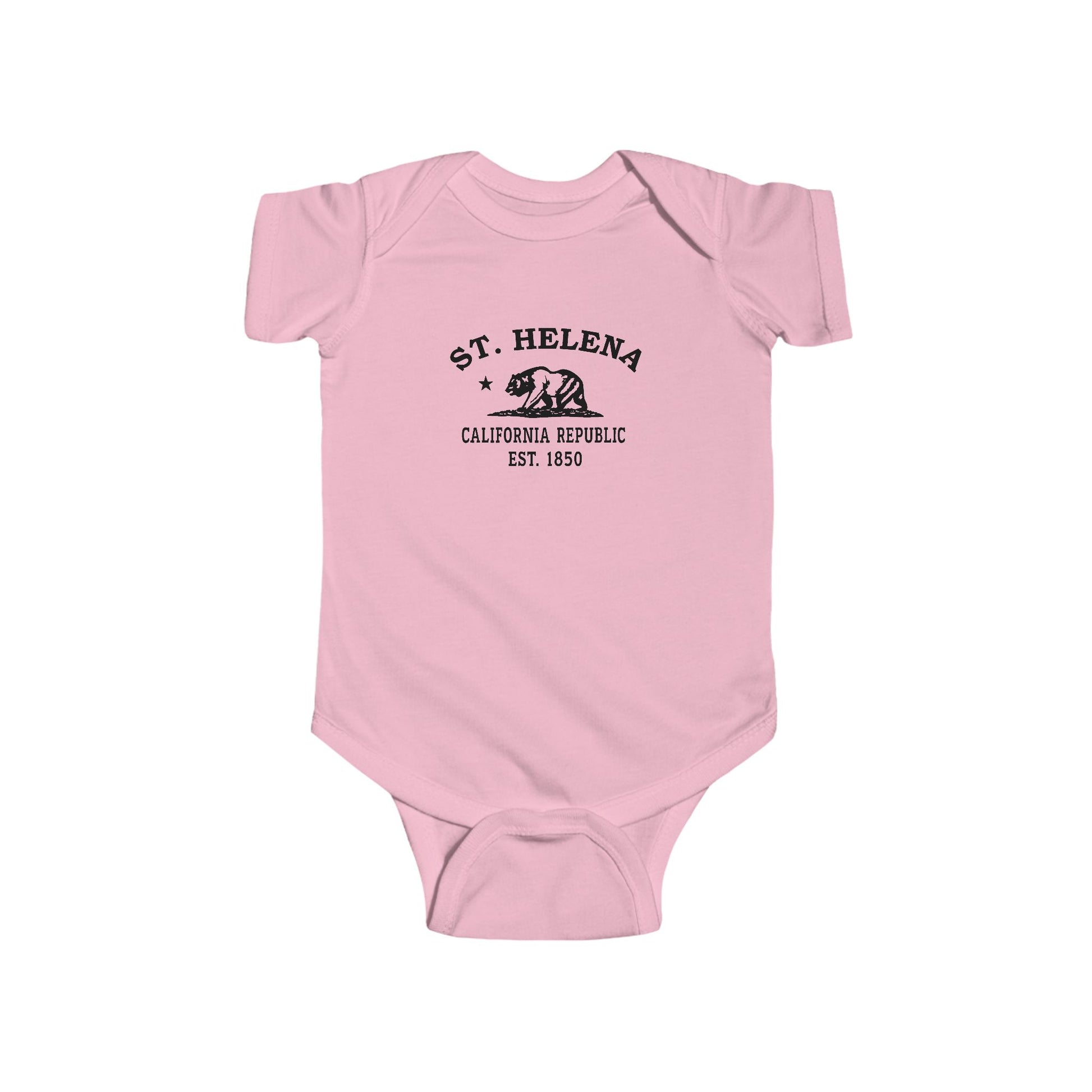 St Helena California Vintage Retro Cotton Jersey Baby Bodysuit - Black Logo