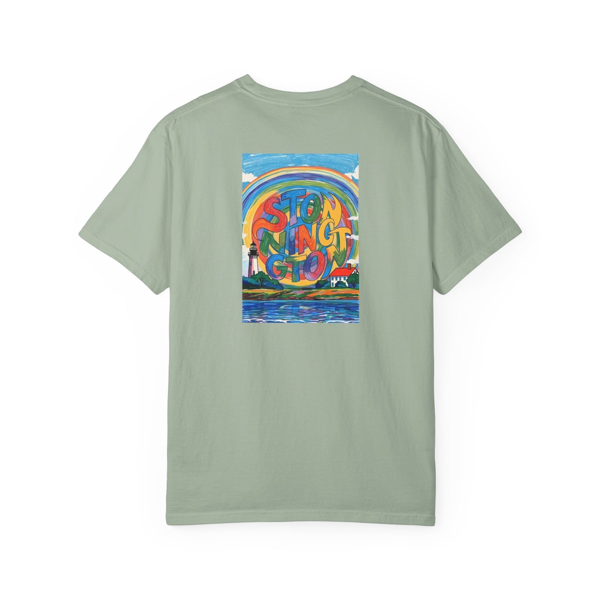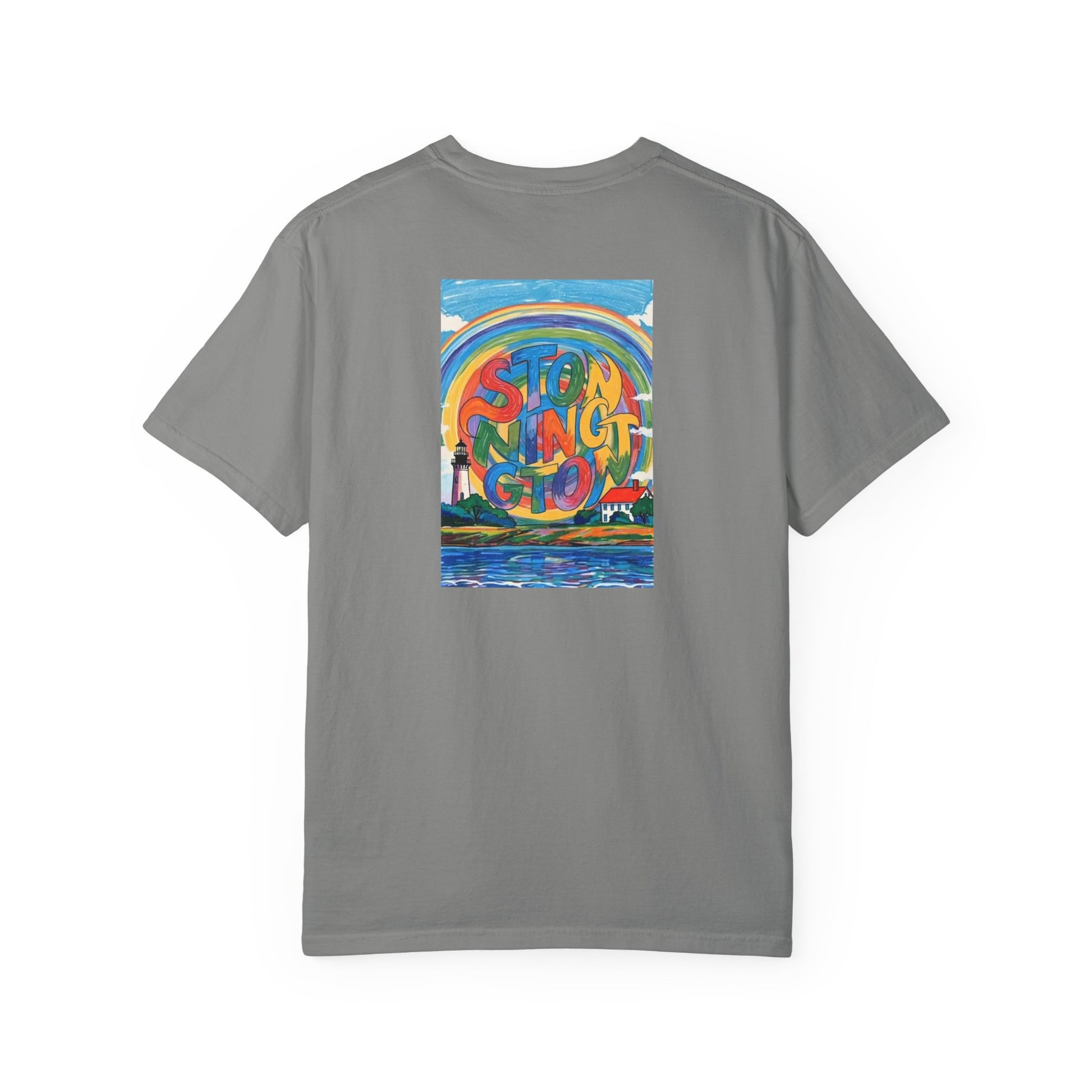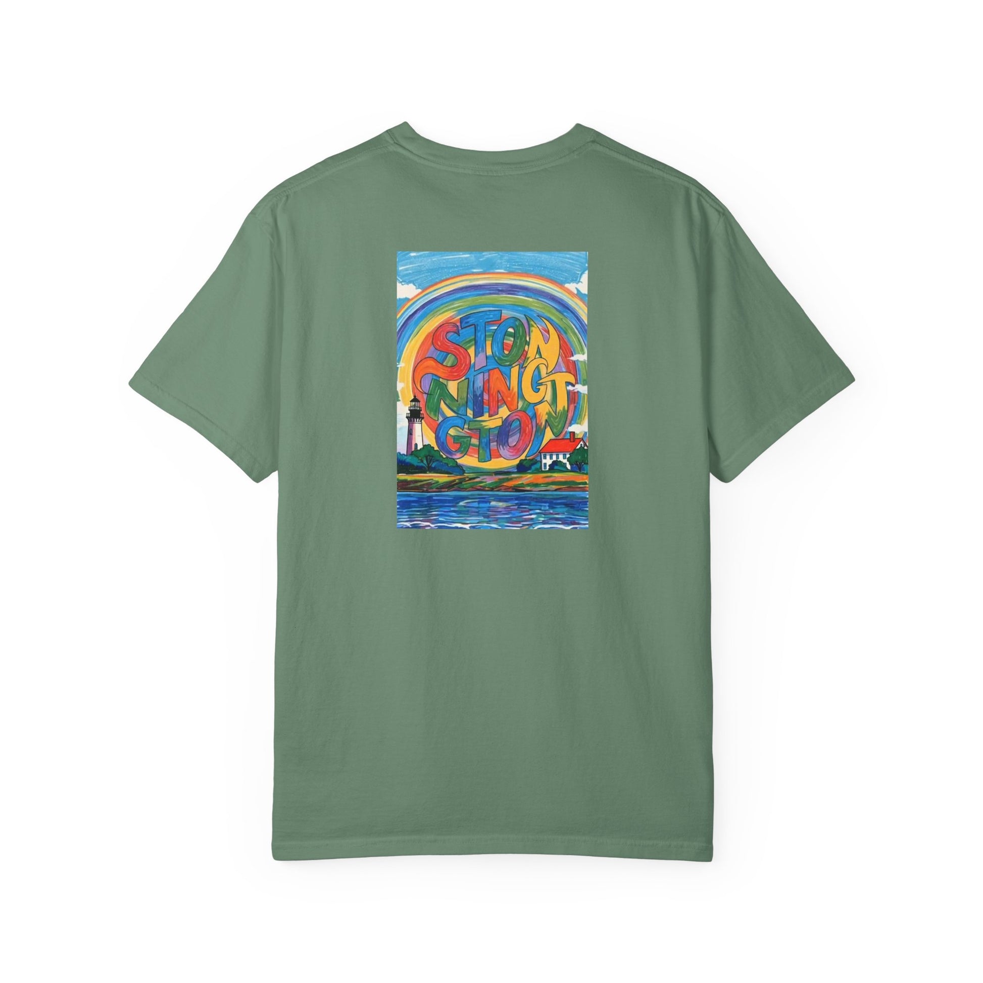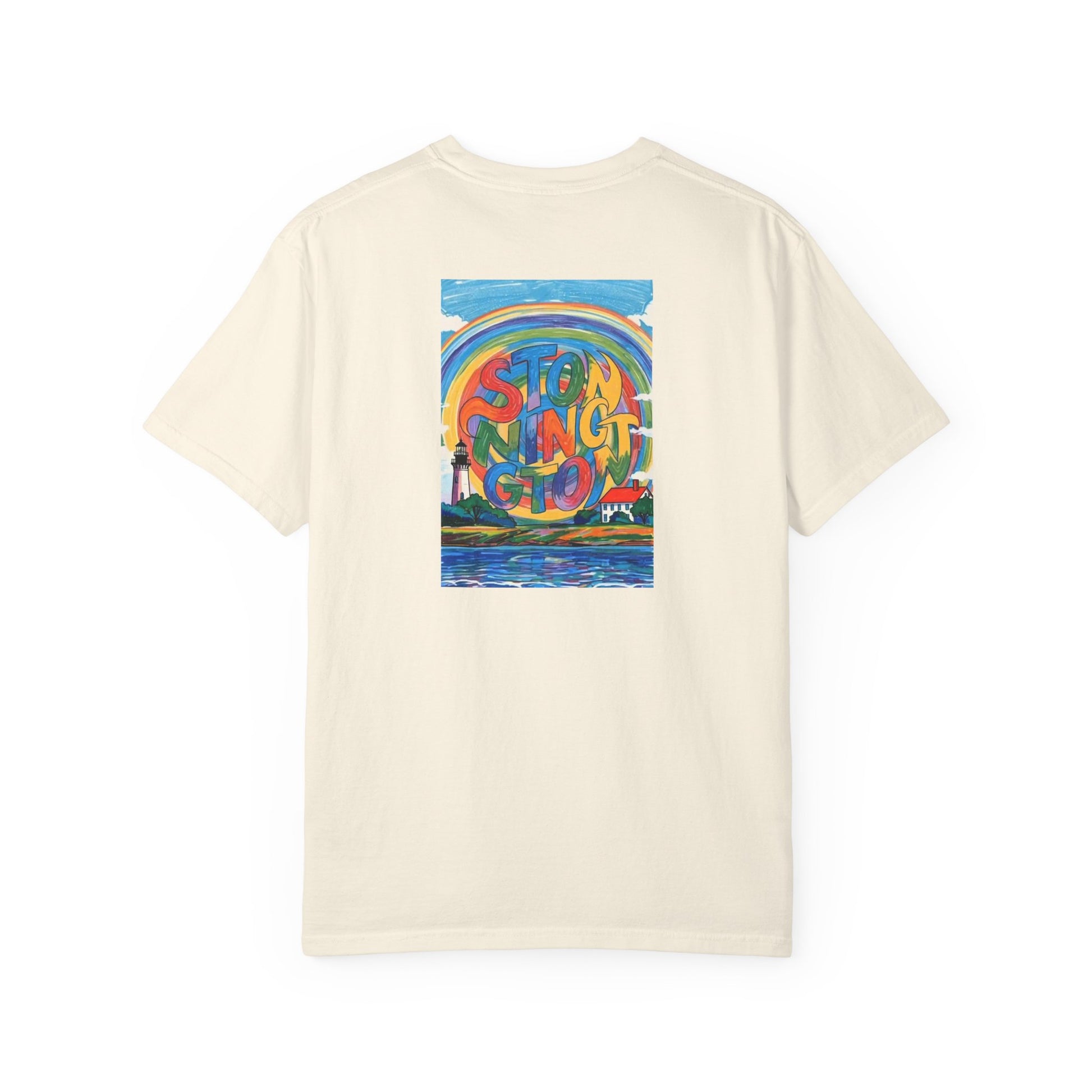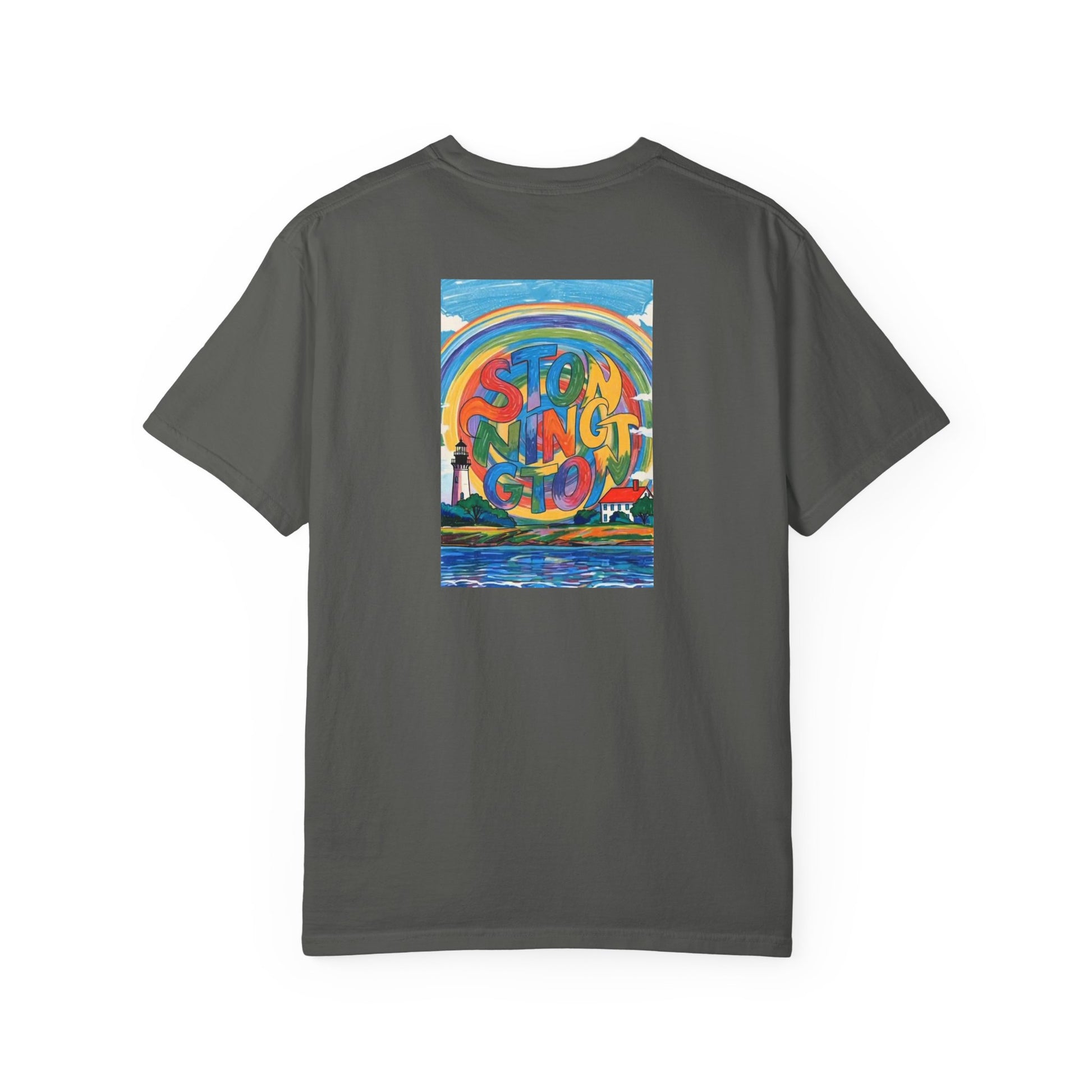 Stonington Connecticut Vintage Retro Back Printed Art Series Cotton Tee - Black Logo