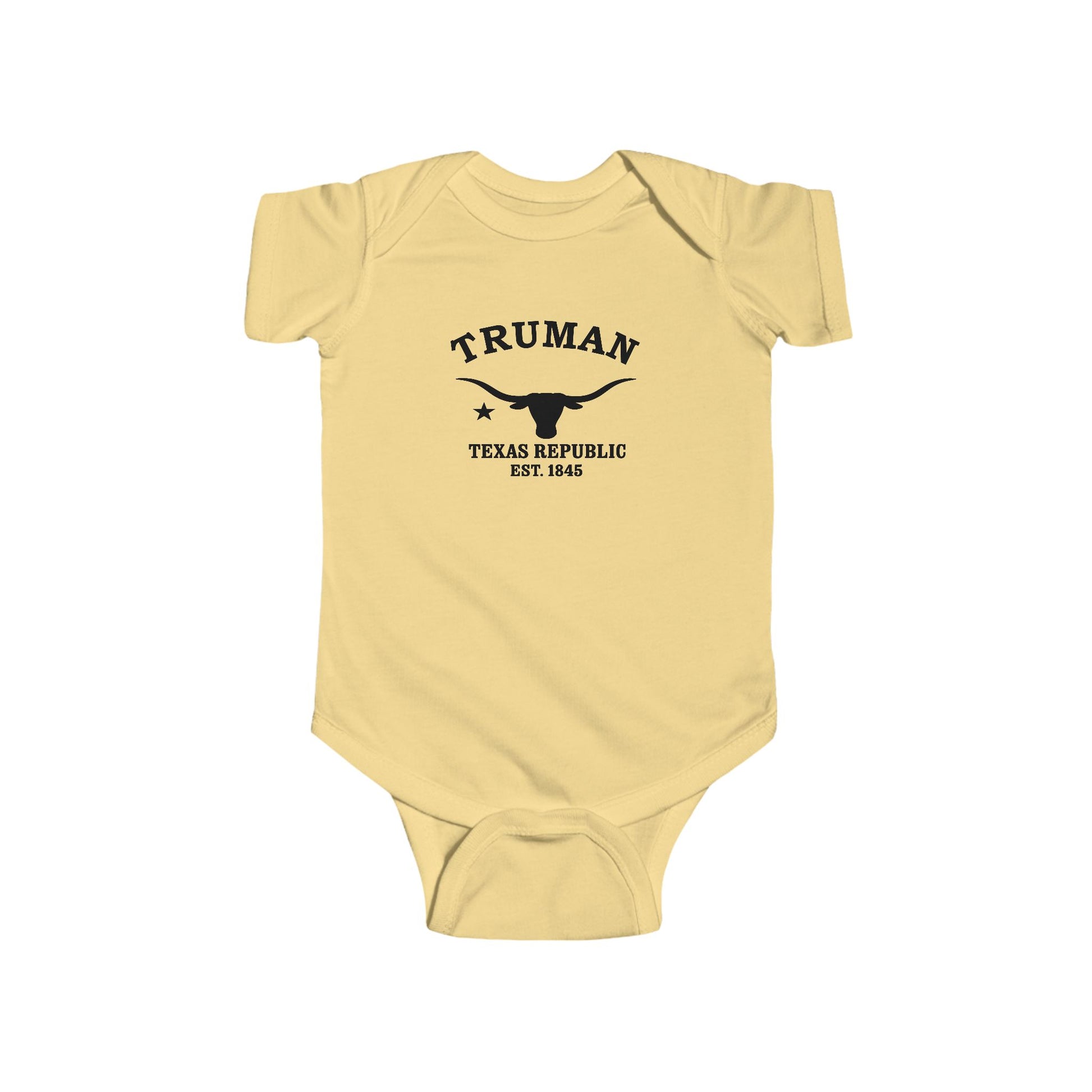 Truman Texas Vintage Retro Cotton Jersey Baby Bodysuit - Black Logo