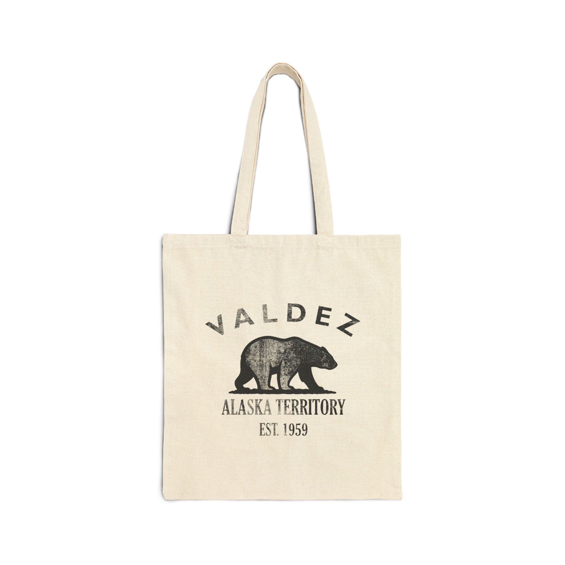 Valdez Alaska Vintage Retro Cotton Canvas Tote Bag - Black Logo