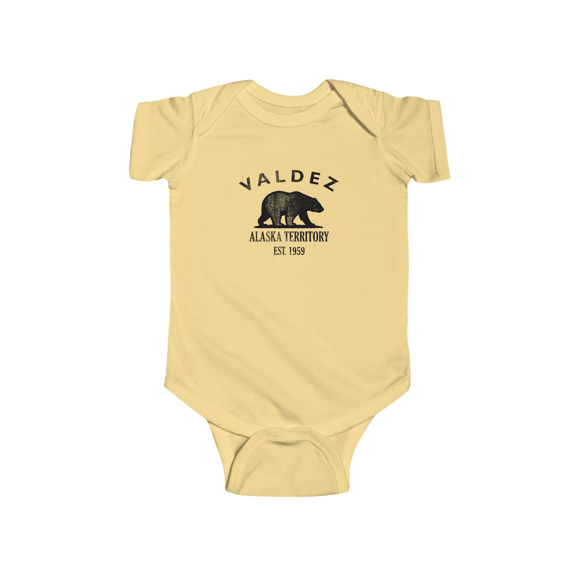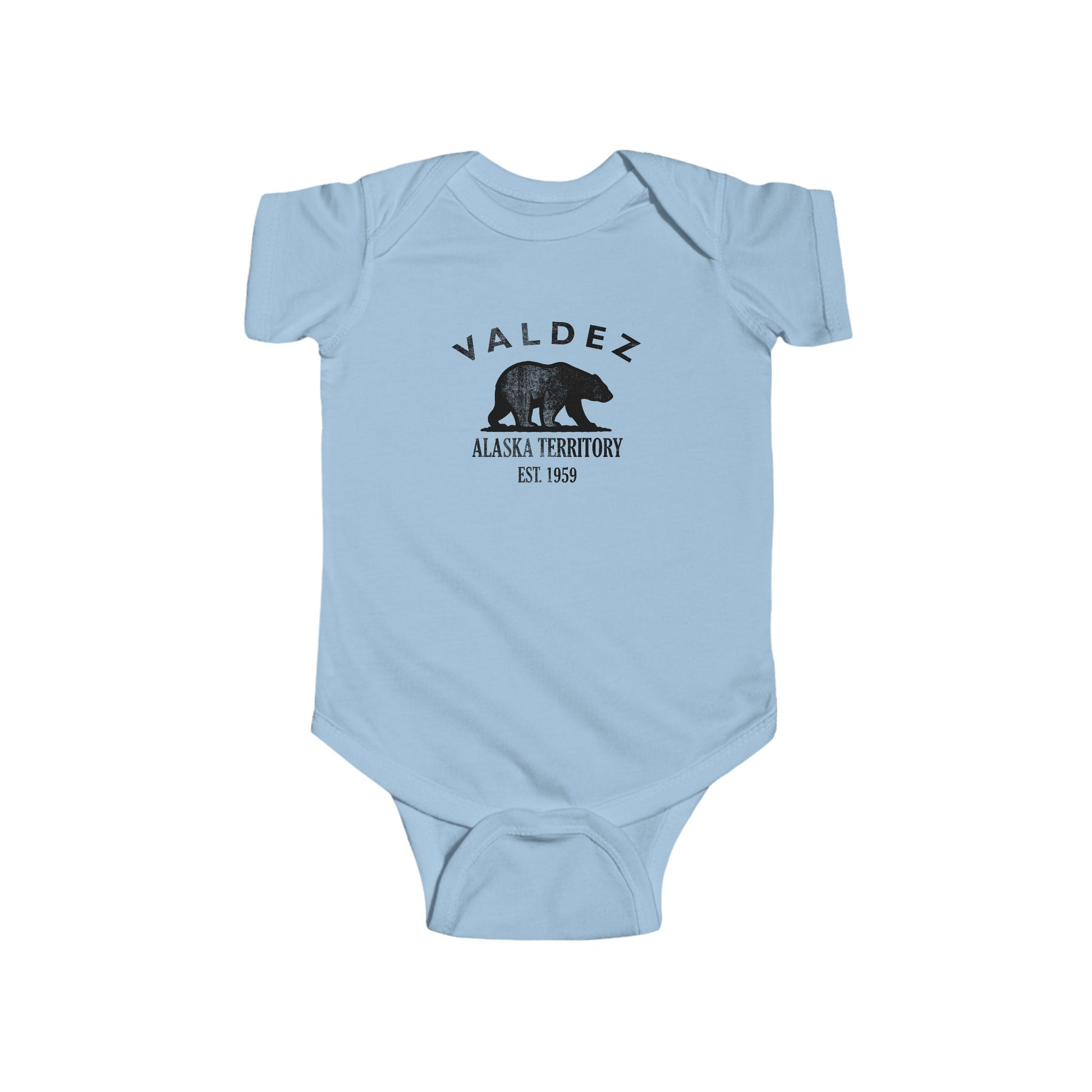 Valdez Alaska Vintage Retro Cotton Jersey Baby Bodysuit - Black Logo