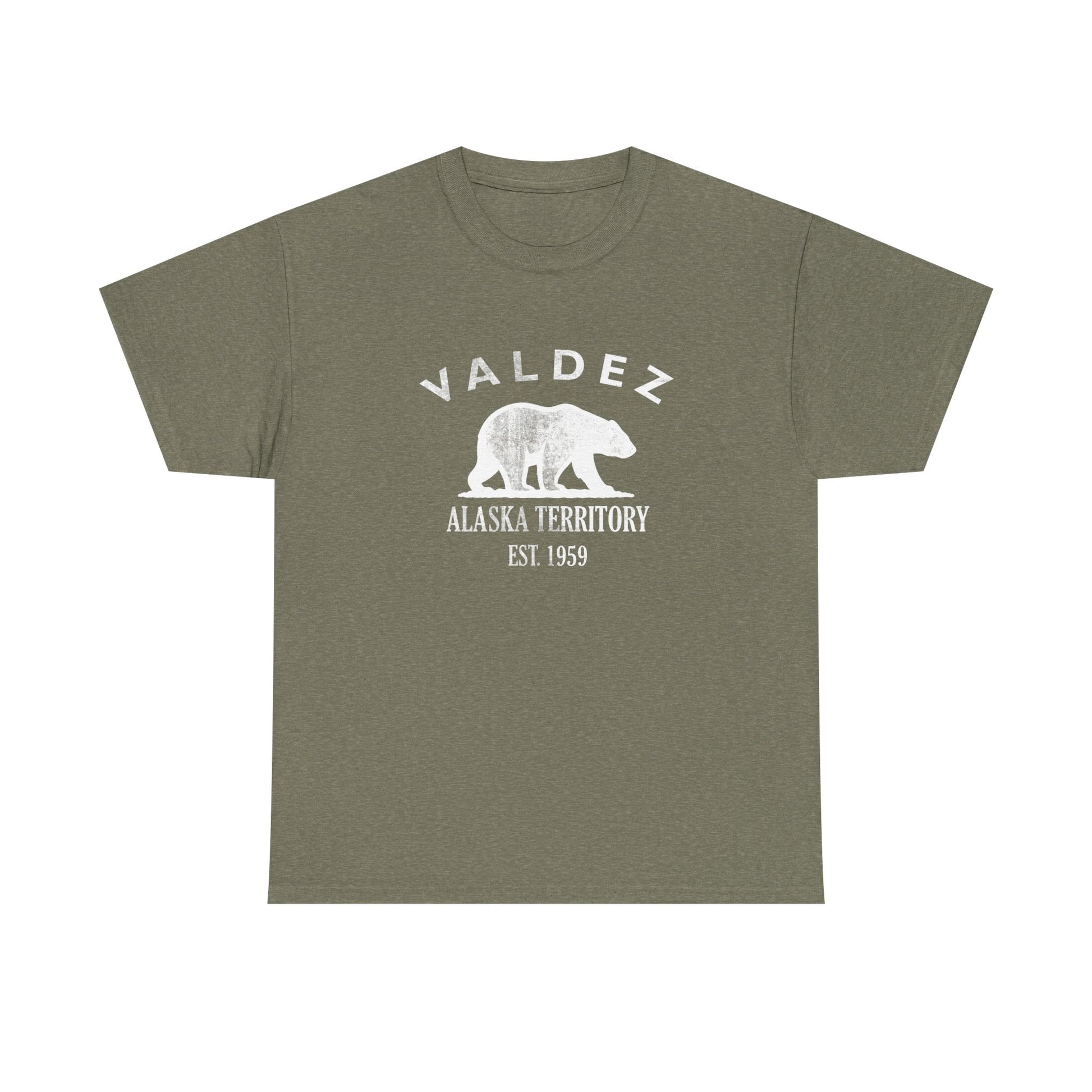 Valdez Alaska Vintage Retro Unisex Heavy Cotton Tee - White Logo