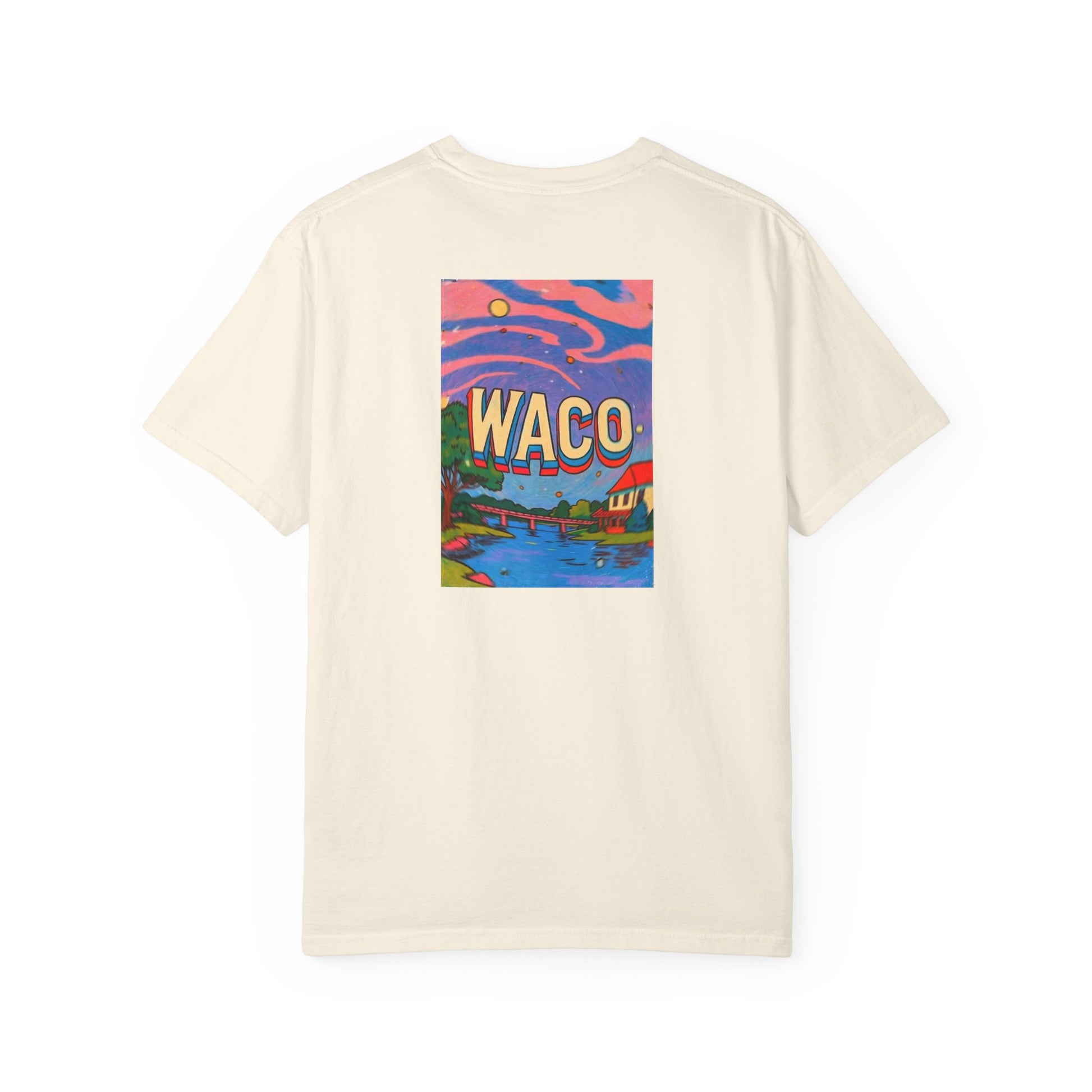 Waco Texas Vintage Retro Back Printed Art Series Cotton Tee - Black Logo
