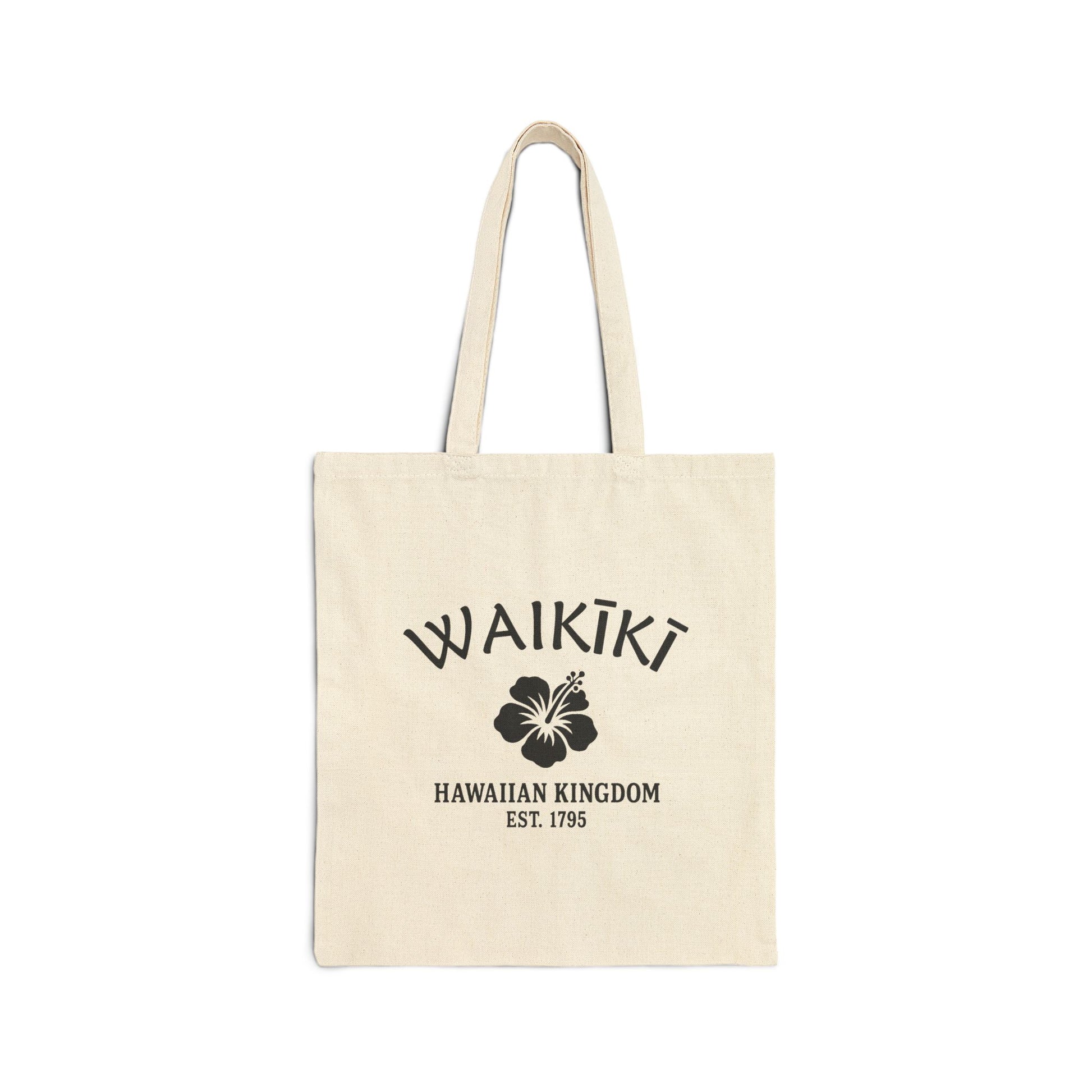 Waikiki Hawaii Vintage Retro Cotton Canvas Tote Bag - Black Logo