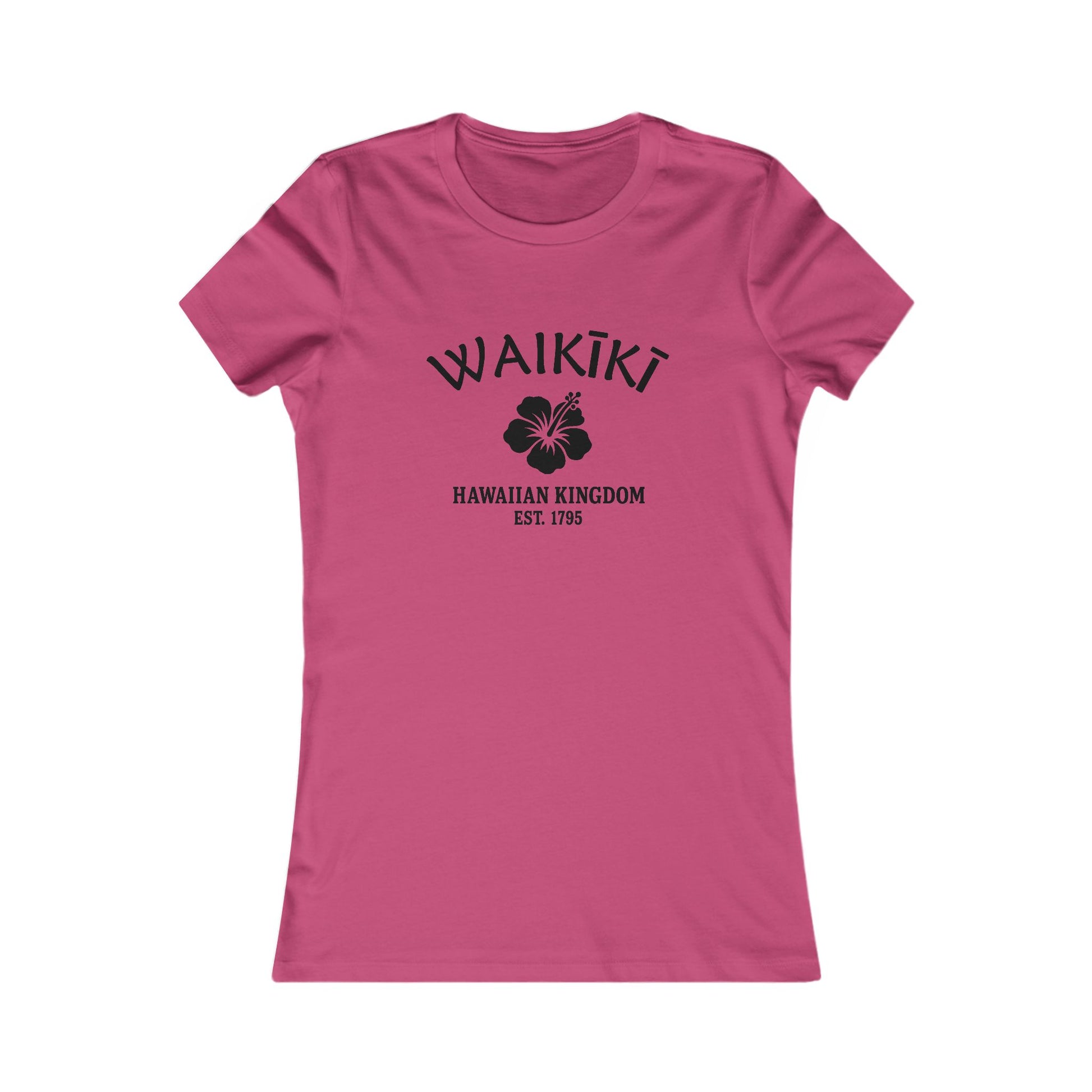 Waikiki Hawaii Vintage Retro Womens Fitted Ringspun Cotton Tee - Black Logo