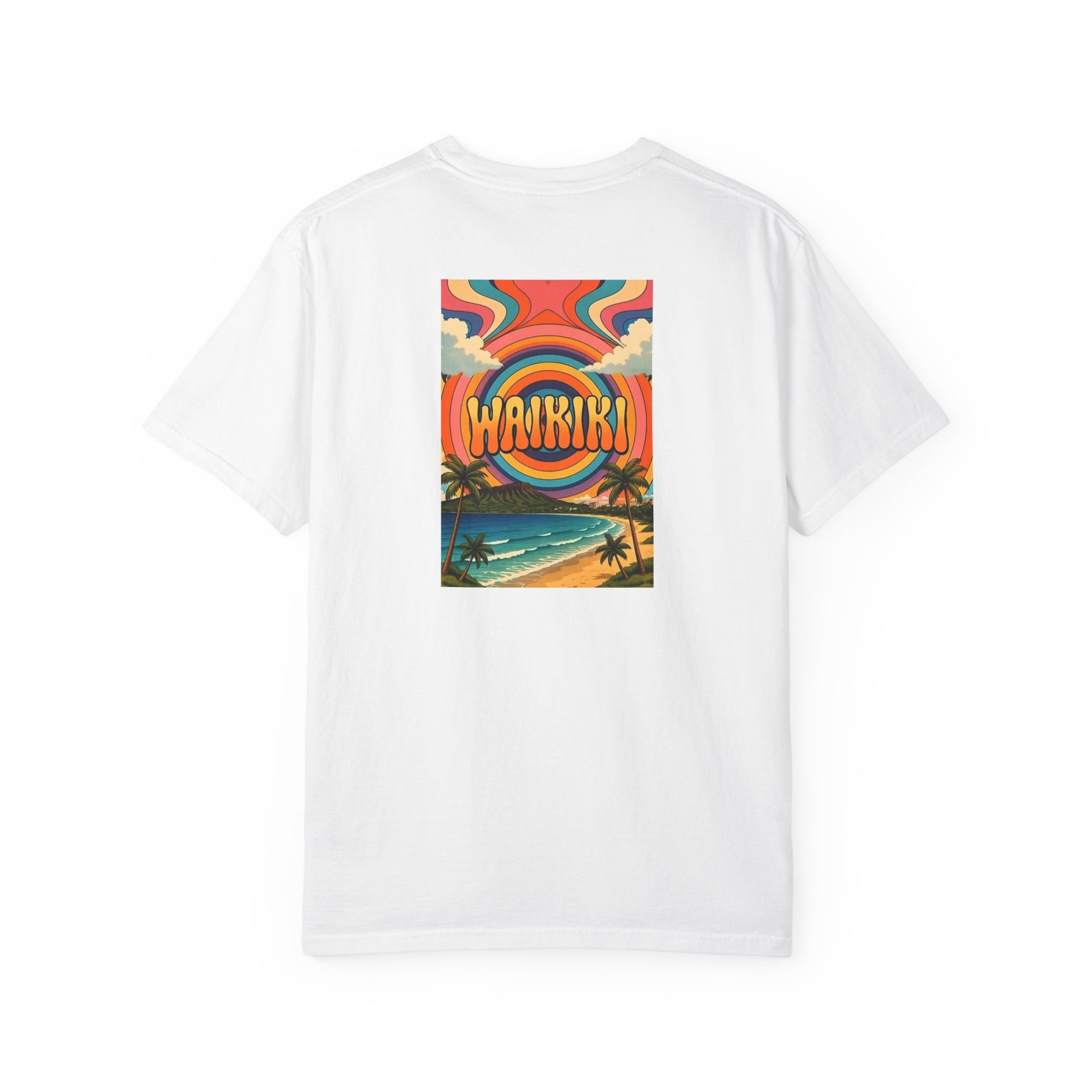 Waikiki Hawaii Vintage Retro Back Printed Art Series Cotton Tee - Black Logo