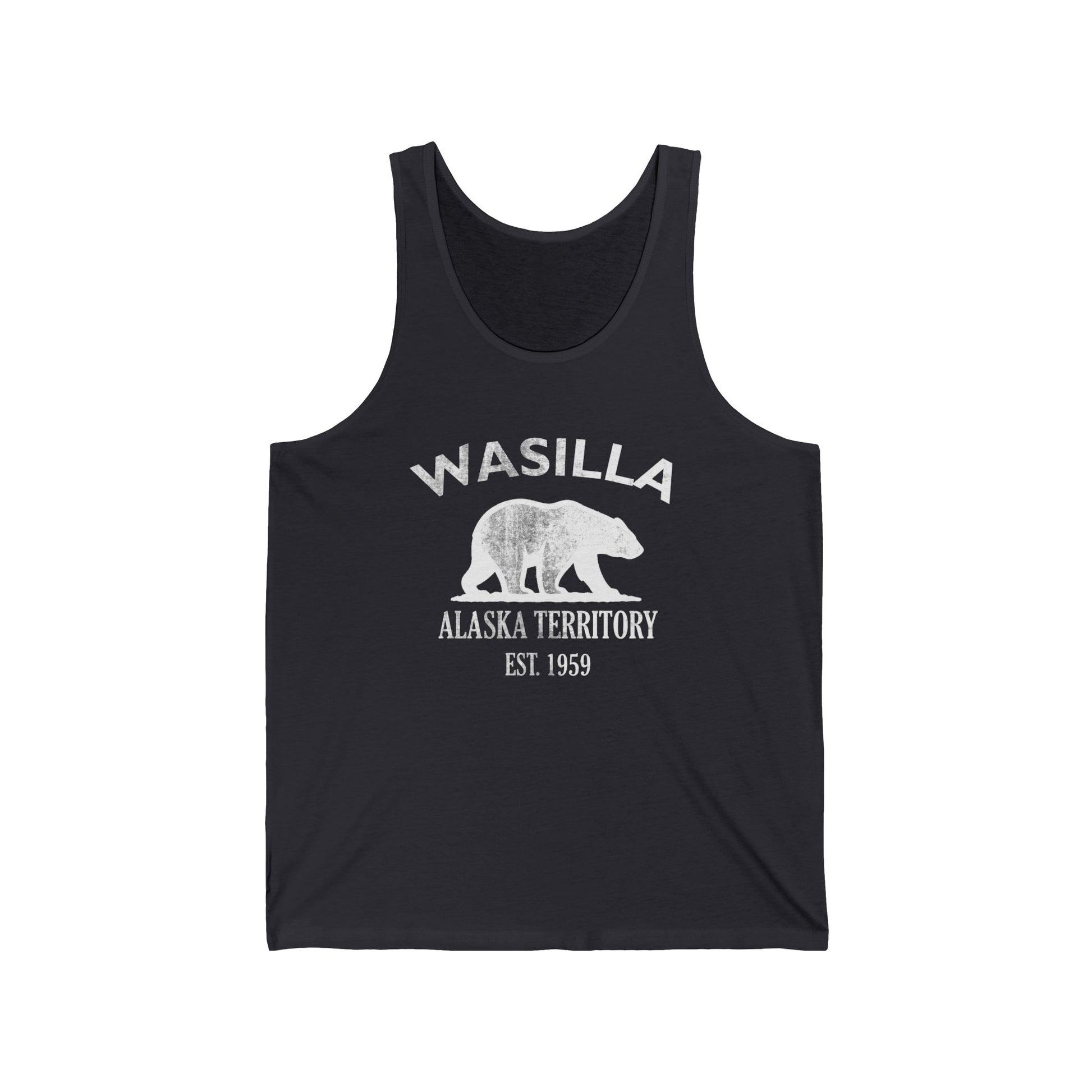 Wasilla Alaska Vintage Retro Unisex Cotton Jersey Tank Top - White Logo