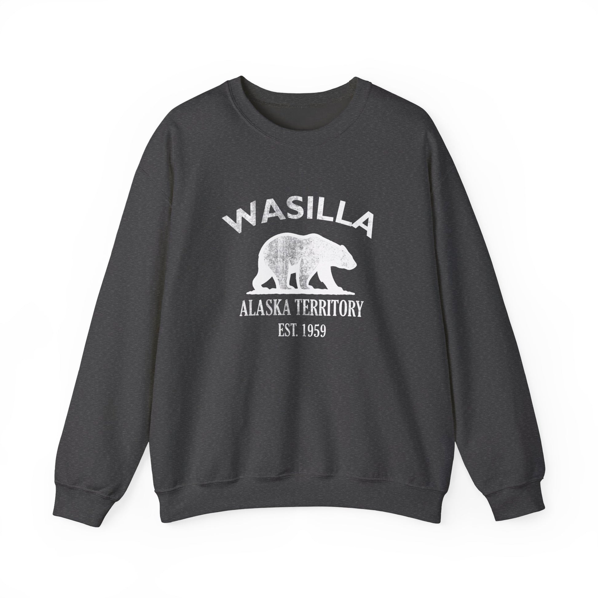 Wasilla Alaska Vintage Retro Unisex Heavy Crewneck Sweatshirt - White Logo