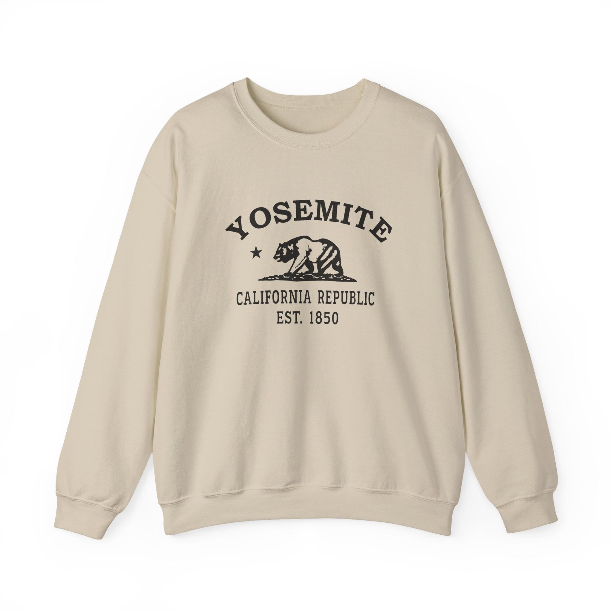 Yosemite California Vintage Retro Unisex Heavy Crewneck Sweatshirt - Black Logo
