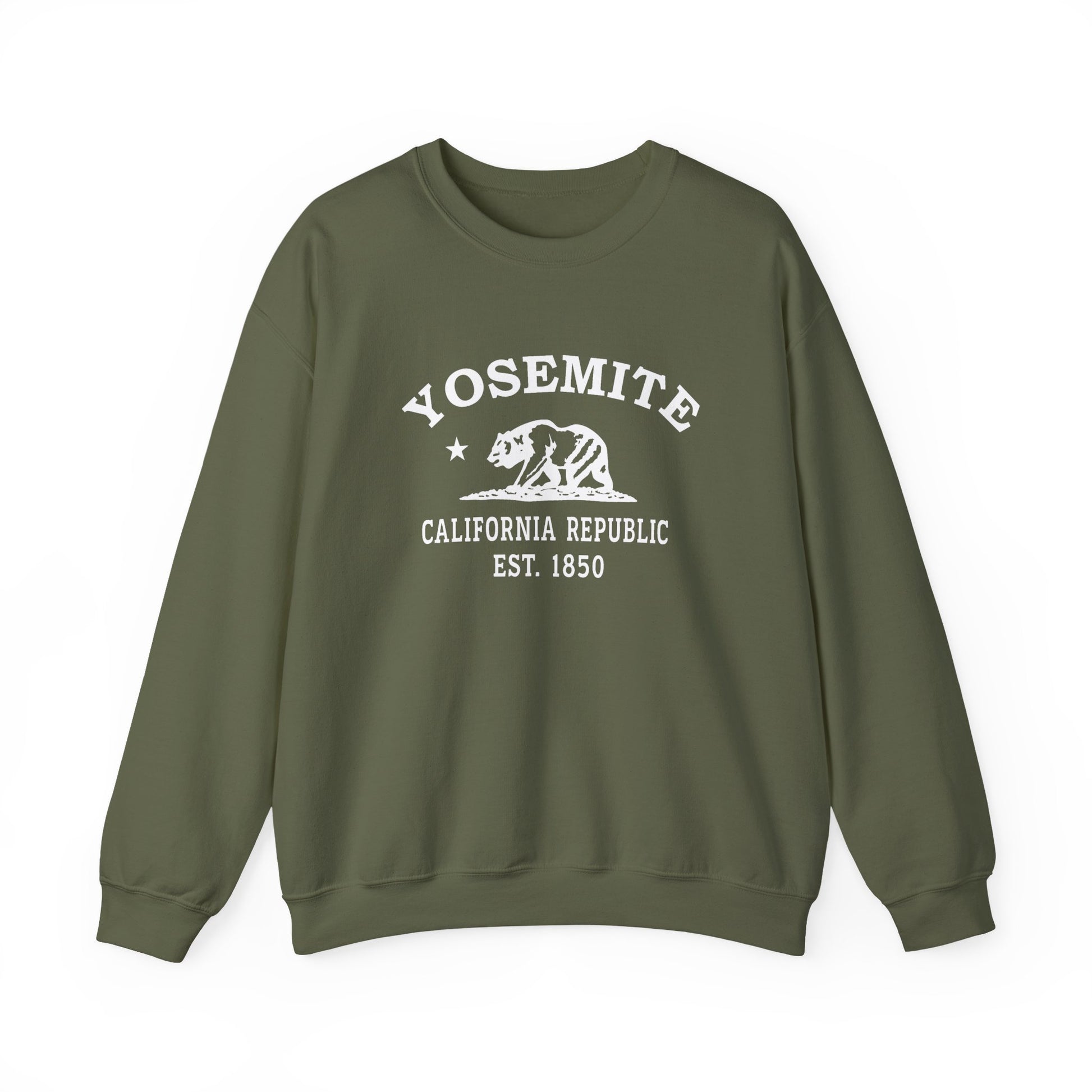 Yosemite California Vintage Retro Unisex Heavy Crewneck Sweatshirt - White Logo